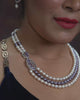 Elevate your ethnic look with this elegant triple-strand pearl necklace set, beautifully designed with a...