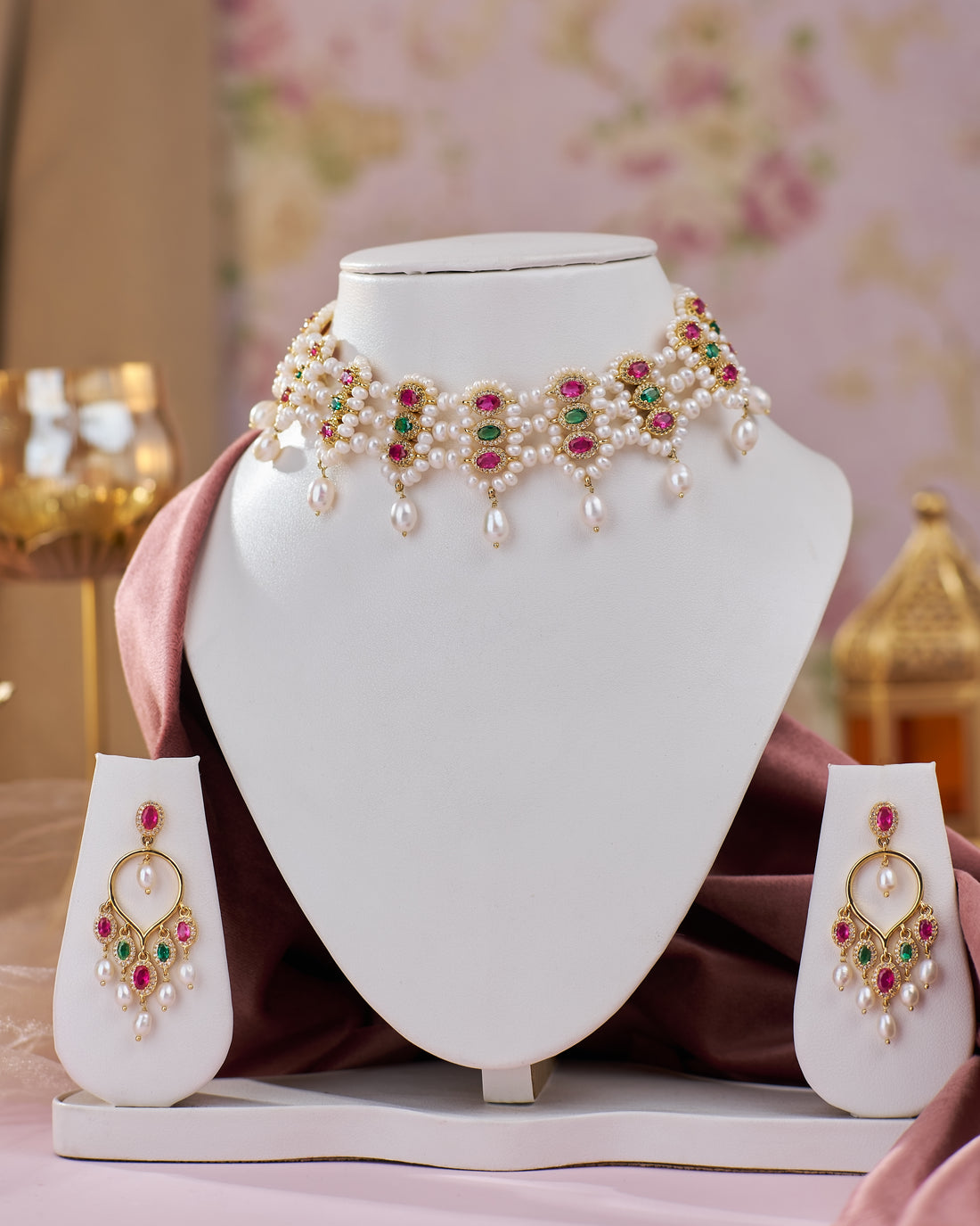 Elegant pearls paired with intricate stone detailing. A regal design that enhances bridal and festive looks. Ideal...