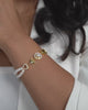 White Pearl Bracelet with Gold Geometric CZ Accents