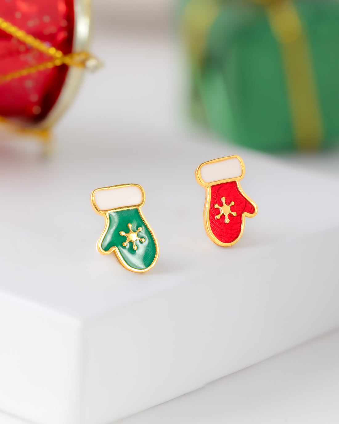 Festive Christmas Gloves Earrings – Red & Green Holiday Charm