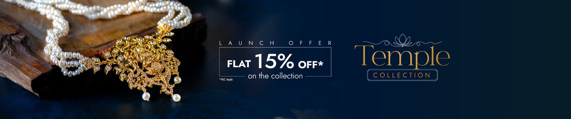 An exquisite floral vine–themed temple choker crafted with freshwater pearls and luminous CZ stones. Paired...