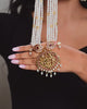 Pearl Goddess Lakshmi Layered Necklace Set With Peacock Temple Pendant