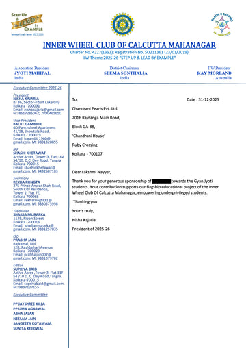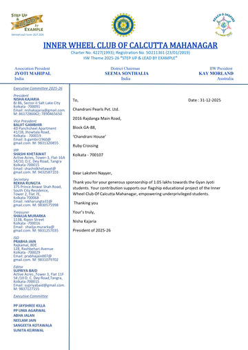 Inner Wheel Club Of Calcutta Mahanagar actively supports the education of underprivileged girls by helping fund: