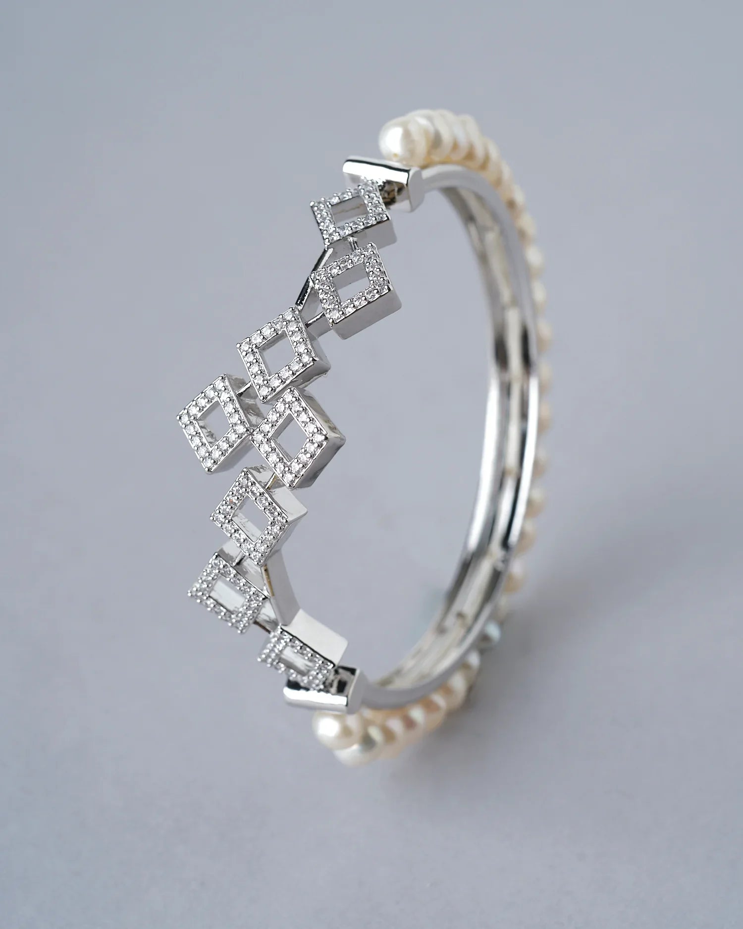 Subtle pearls arranged on a sleek bangle for a delicate, shiny look.