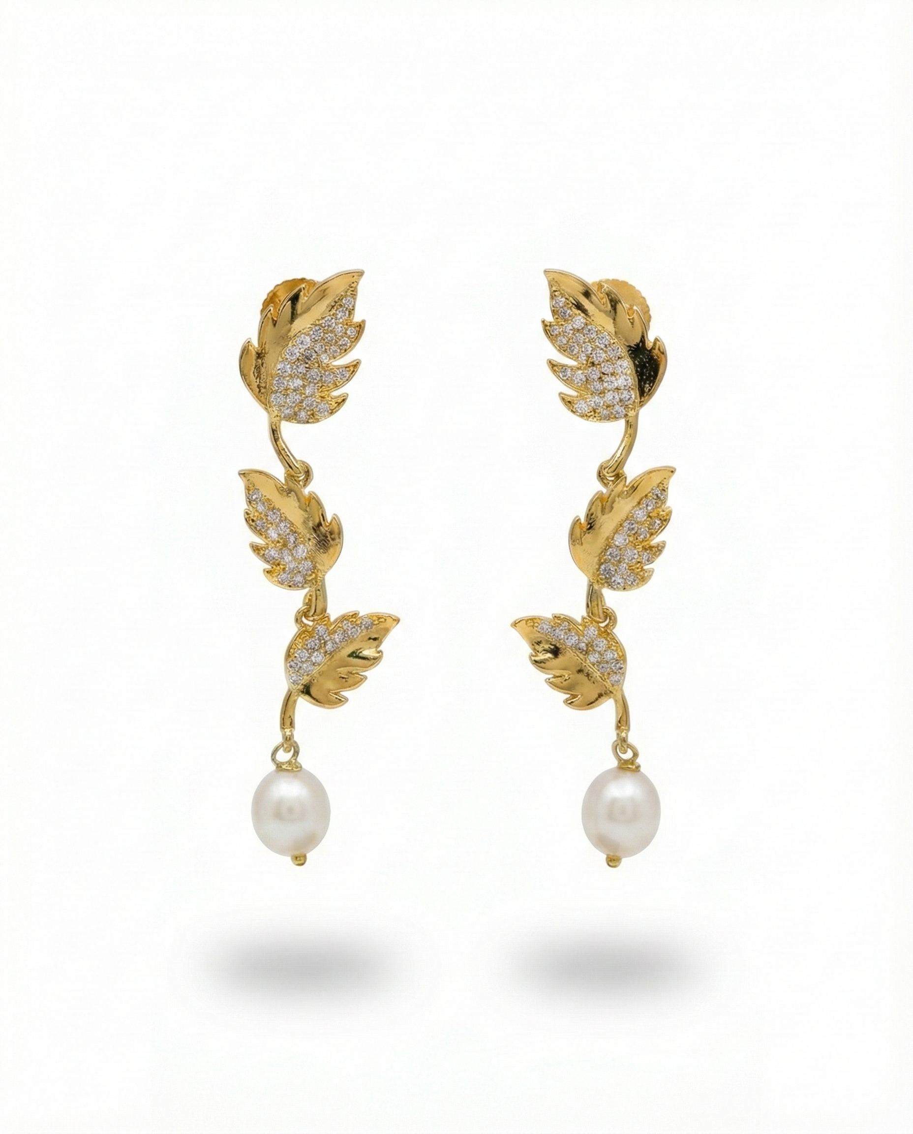 Elevate your jewellery collection with the Botanical Pearl Drop Earrings—a modern interpretation of classic floral motifs. These earrings feature a striking vertical cascade of diamond-encrusted leaves that catch the light from every angle. Finished with a clean, spherical pearl drop, they offer a perfect balance of brilliance and understated elegance.