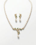 Botanical Pearl Strand Necklace with Drop Earrings