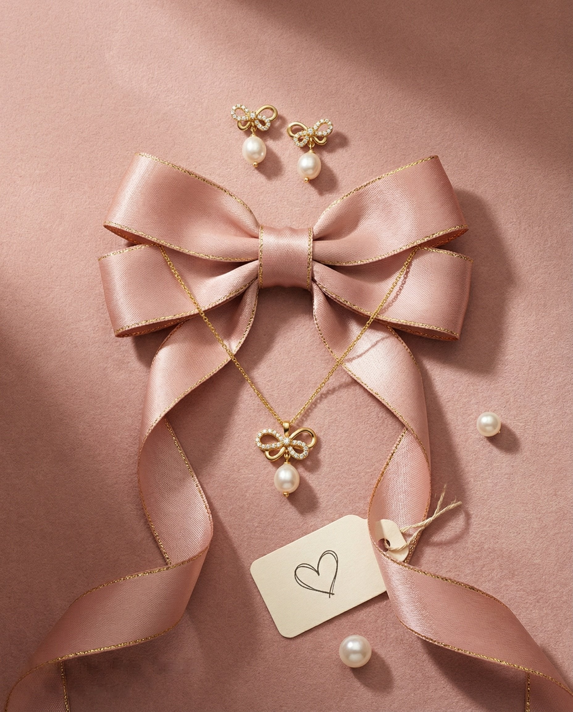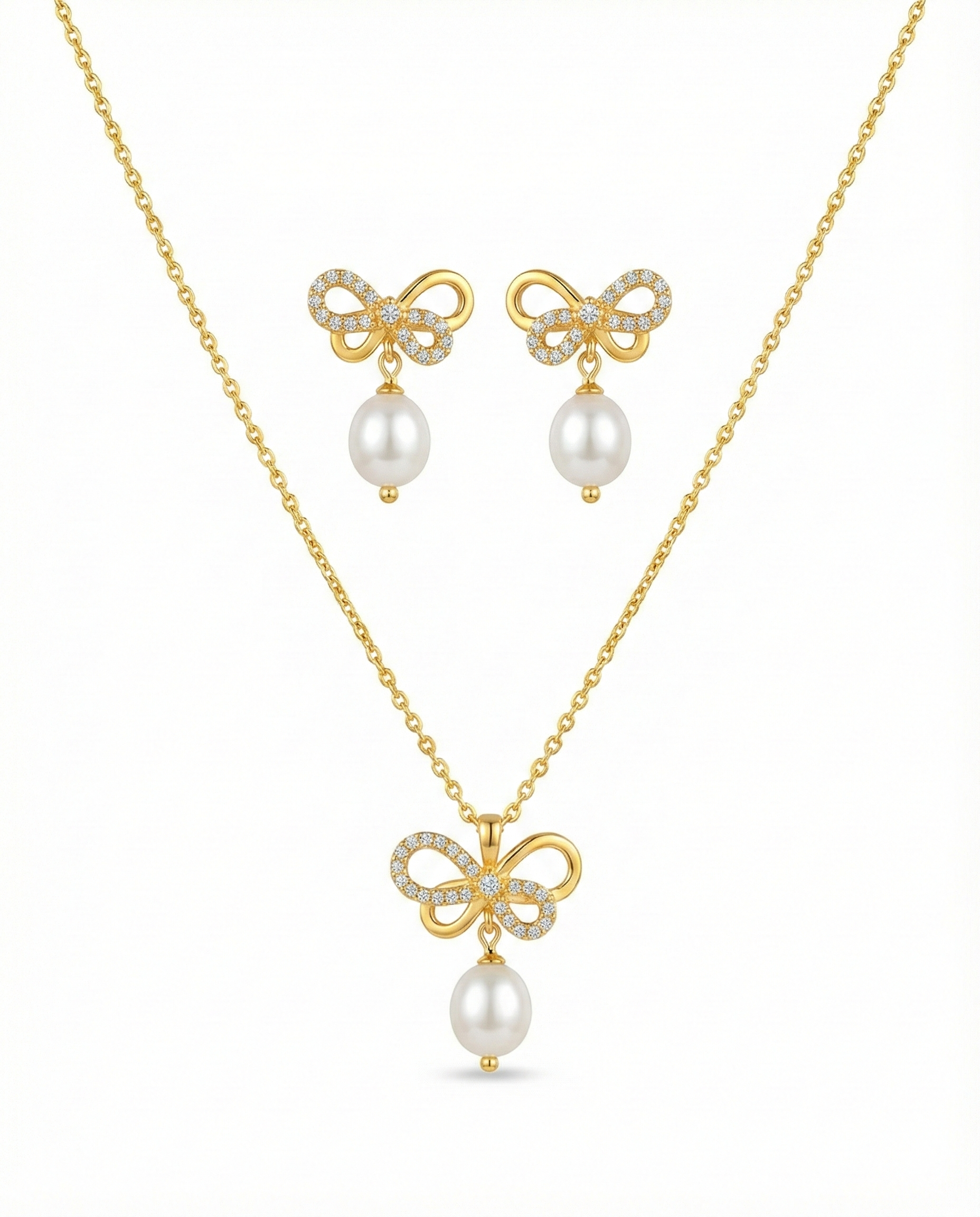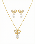 Bow Knot Pearl Drop Pendant with Earrings Set in 925 Silver