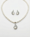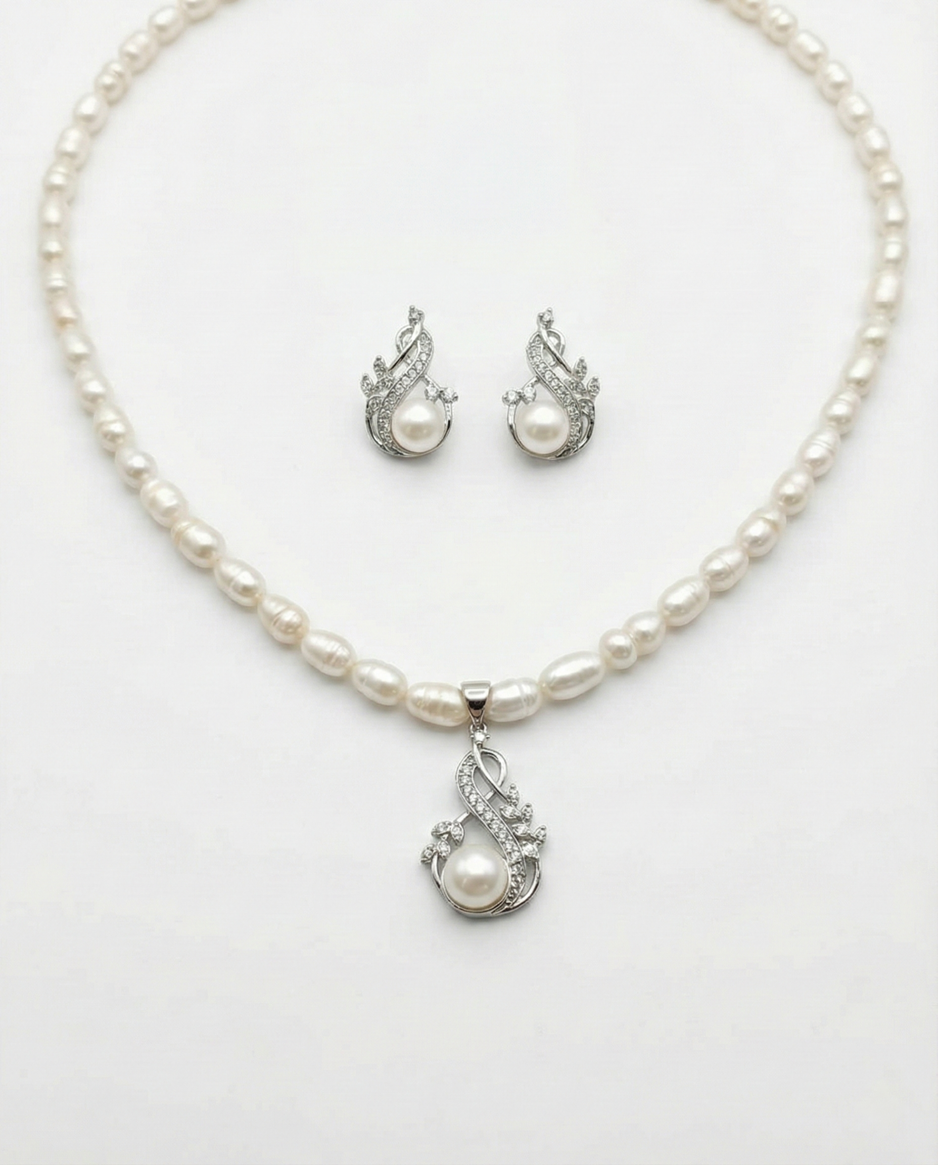 Contemporary Swirl Silver-Tone Ribbon Pearl Jewellery Set