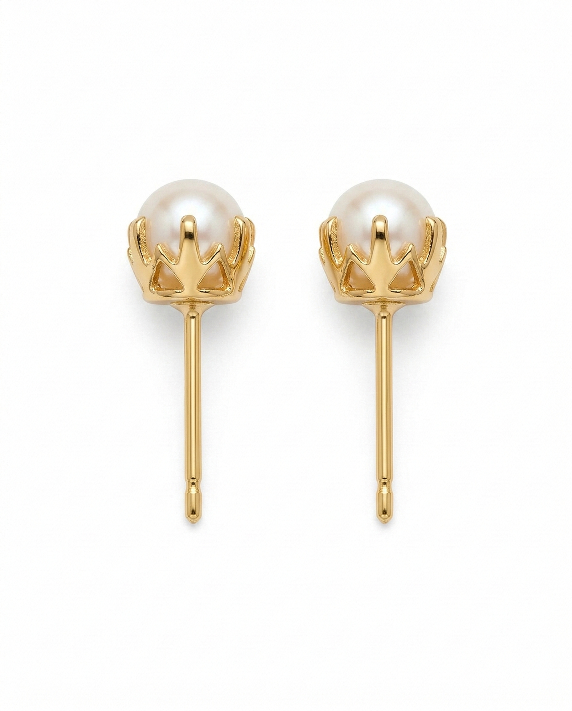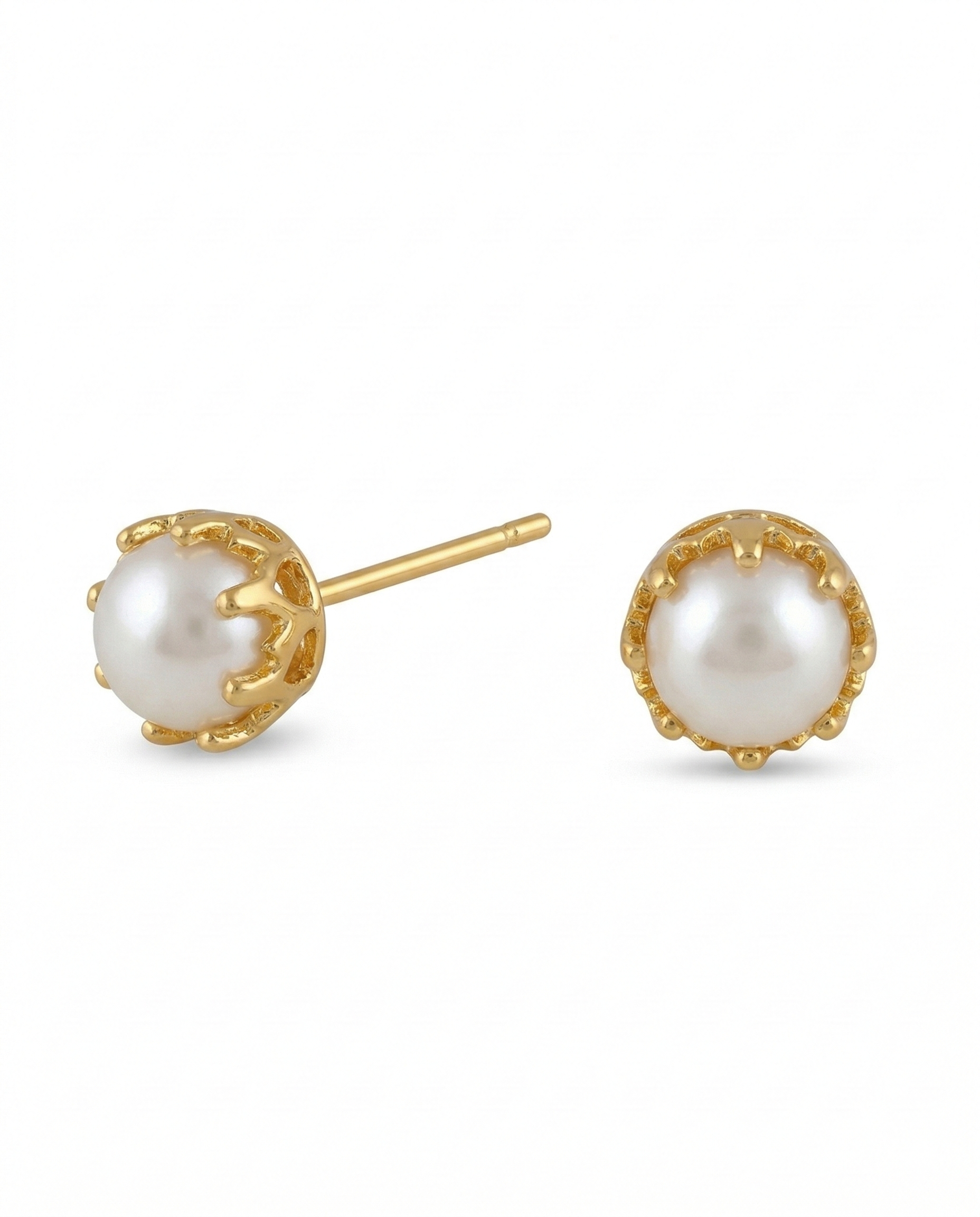 Crown-Set Minimalist Pearl Stud Earrings
