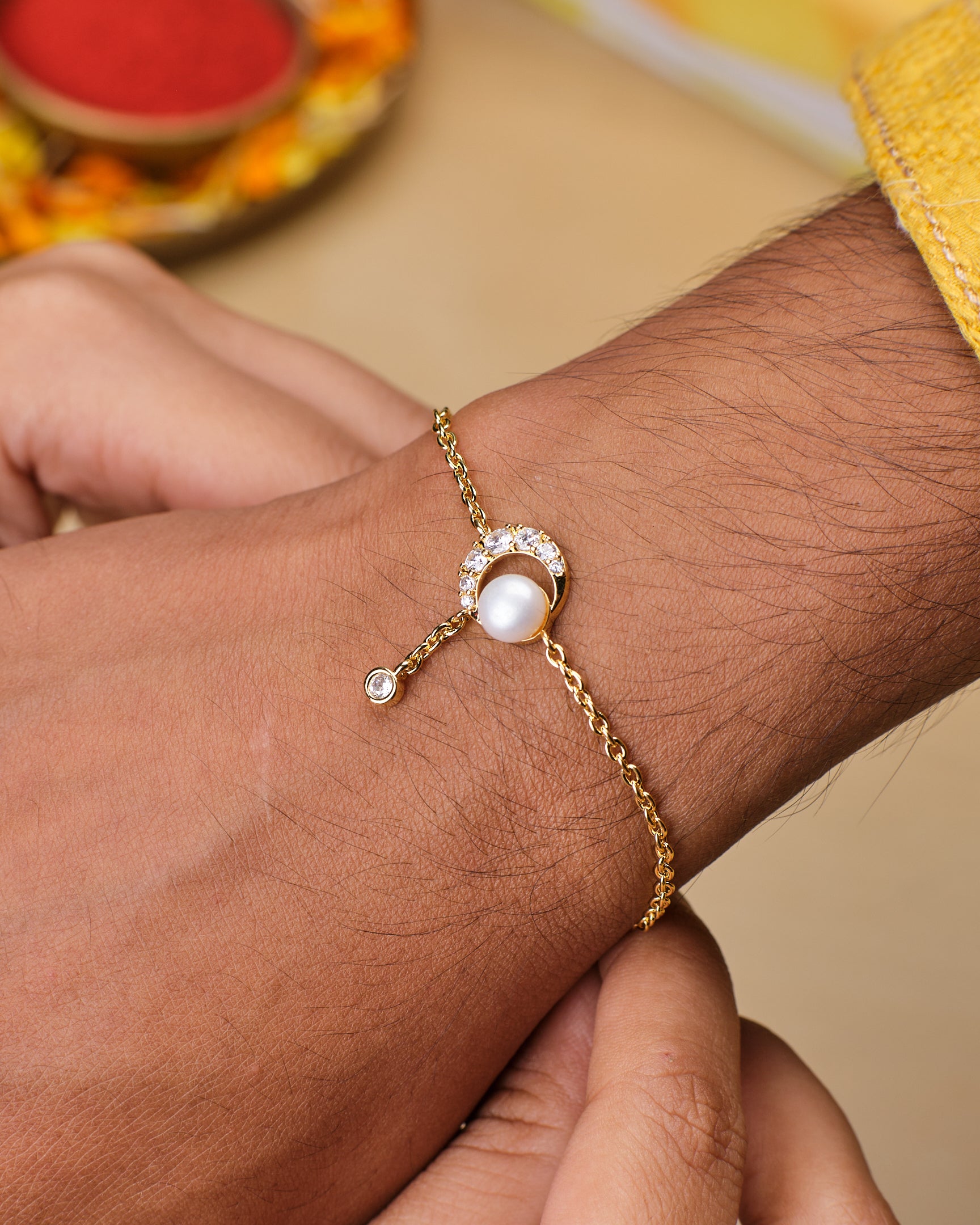 Cute & Simple Pearl Rakhi for Bhaiya