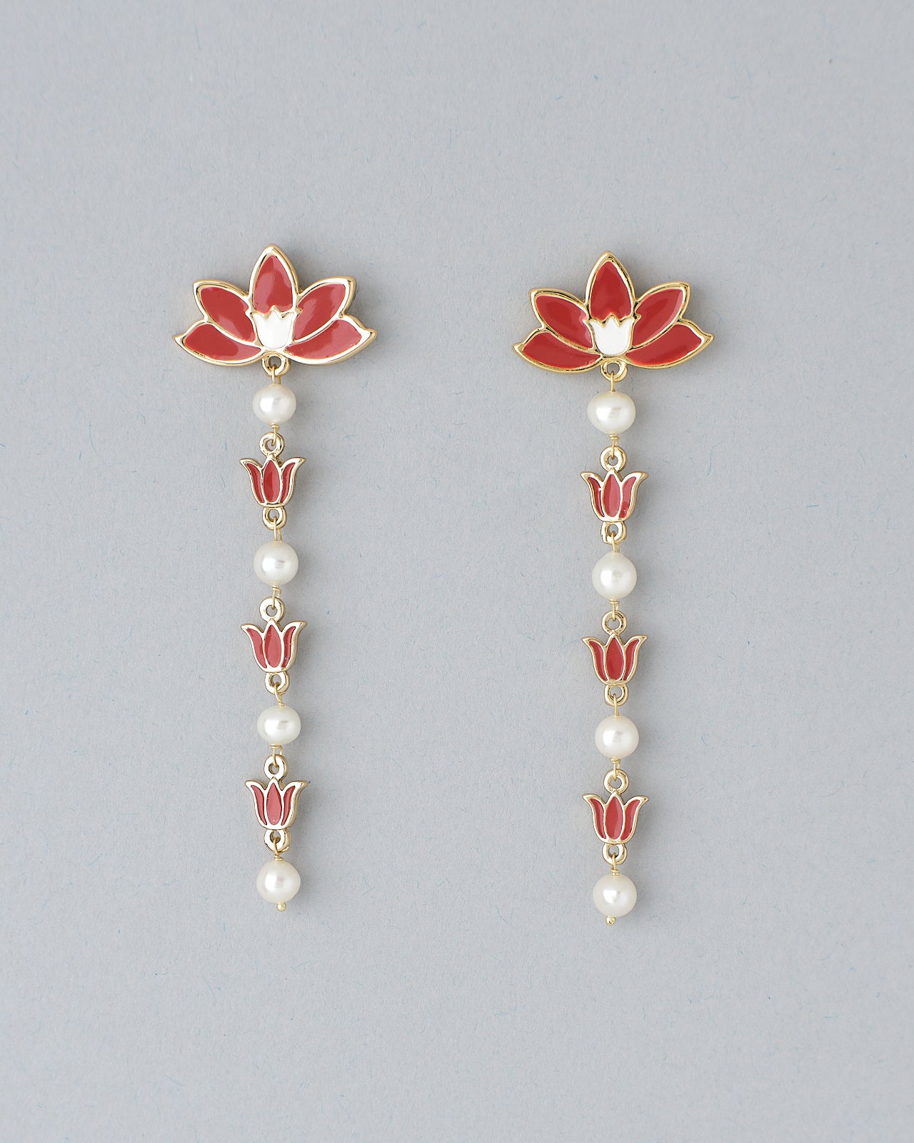 Celebrate the spirit of Diwali with the Divine Bloom Lotus Pearl Earrings, where timeless pearls meet the sacred elegance of the lotus. Symbolizing purity, strength, and new beginnings, these intricately crafted earrings add a graceful glow to your festive look perfect for lighting up every moment with beauty and tradition.