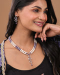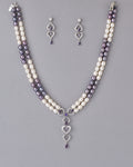 Dual-Tone Pearl CZ Heart Drop Elegant Necklace Set