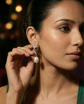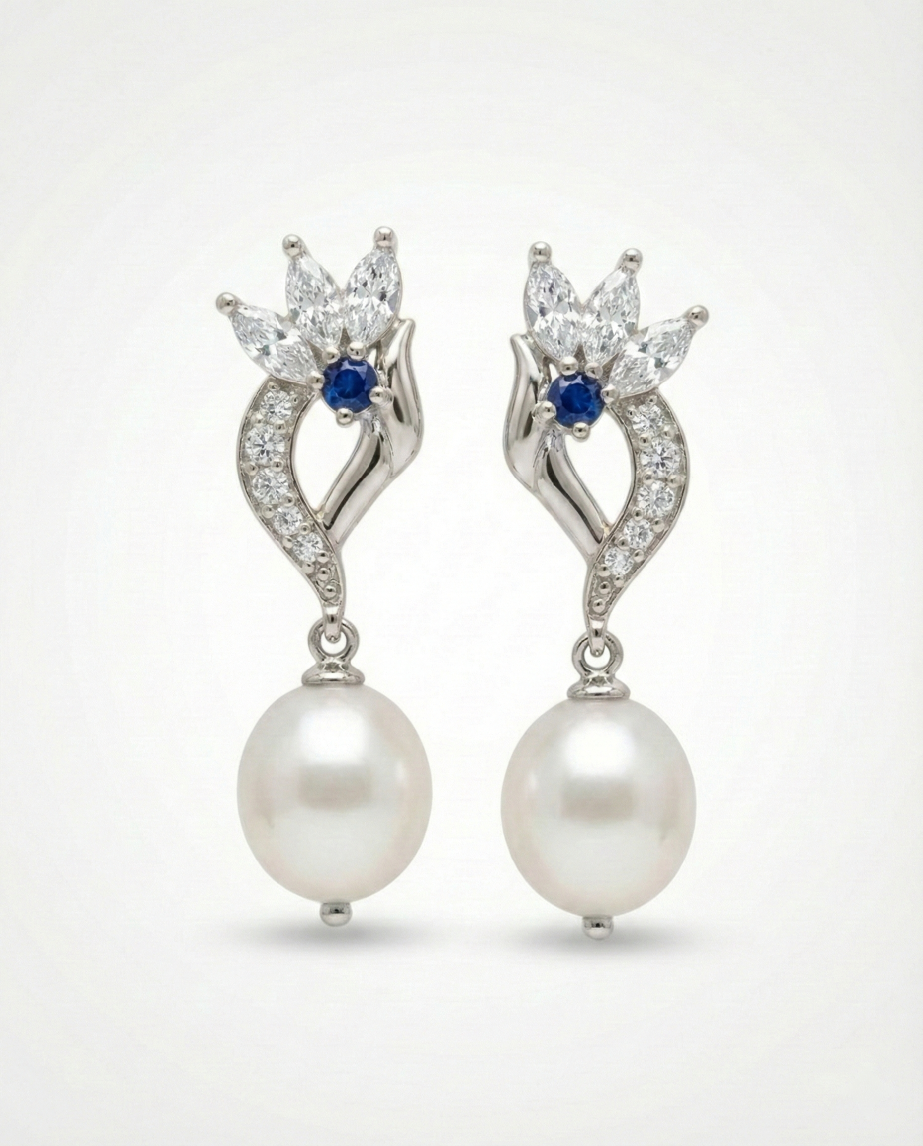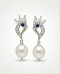 Elegant Floral Drop Pearls CZ Earrings