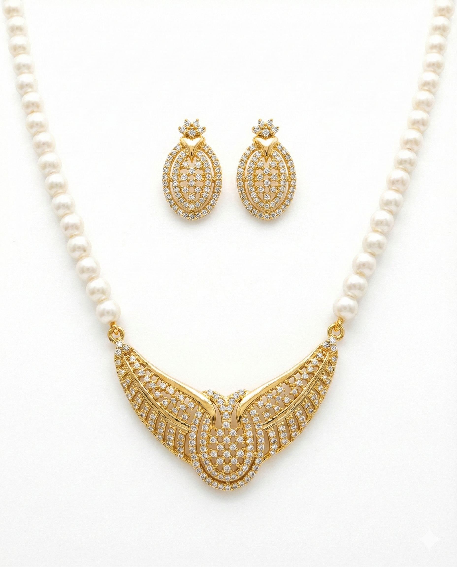 Radiate timeless elegance with this stunning two-piece jewellery set. Combining the soft lustre of pearls with the brilliant sparkle of pavé-set crystals, this set is designed to be the centrepiece of your formal attire.