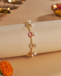Featuring lustrous pearl bracelet that add timeless grace. Accented with sparkling CZ-studded circle motifs. A perfect choice for festive occasions and daily elegance.