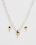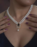 Elegant Pearl Necklace Set with Black Stone Pendant