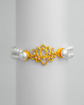 Elegant White Pearl Bracelet with Gold-Tone Floral Motif