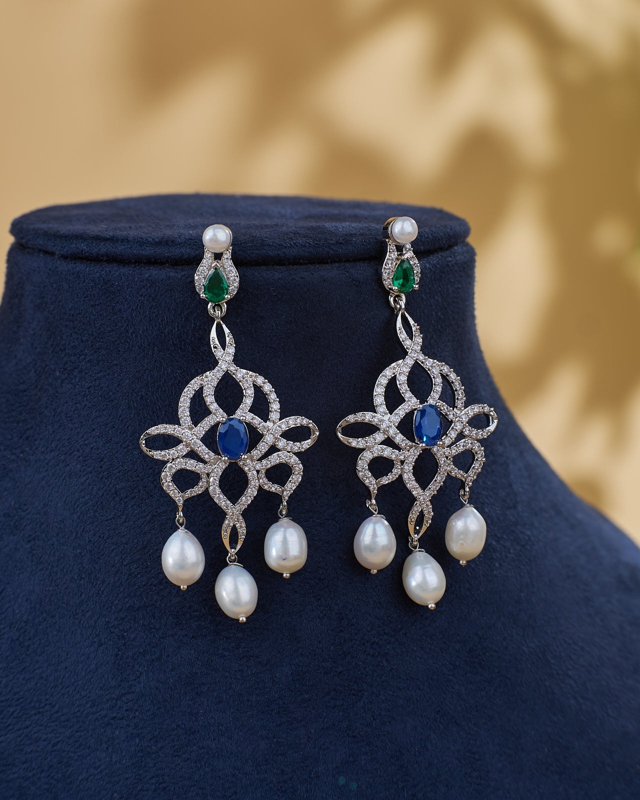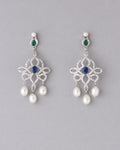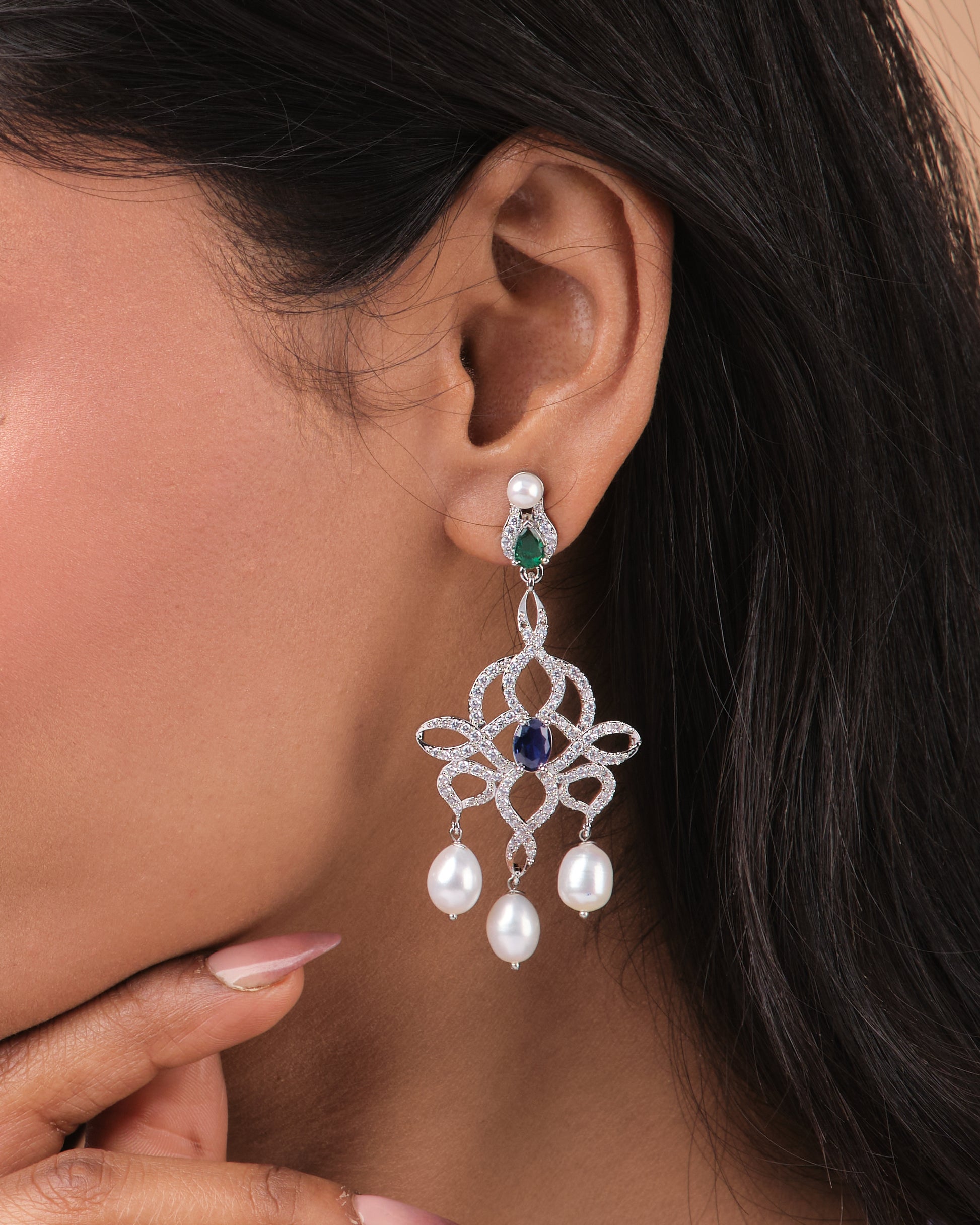 Emerald & Sapphire CZ Pearl Drop Chandelier Earrings