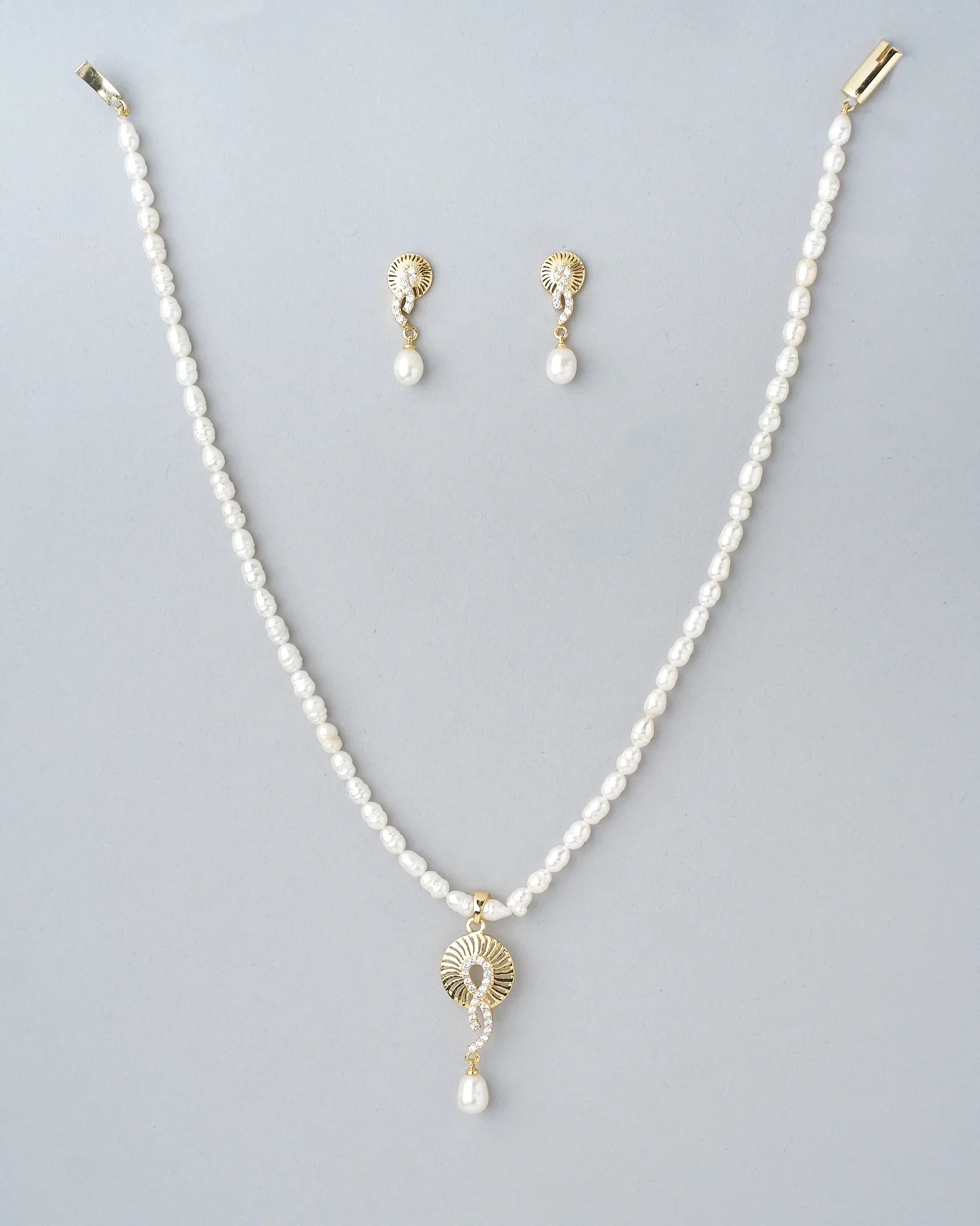 Timelessly beautiful and gorgeously detailed this pearl and CZ stone set makes every moment feel special