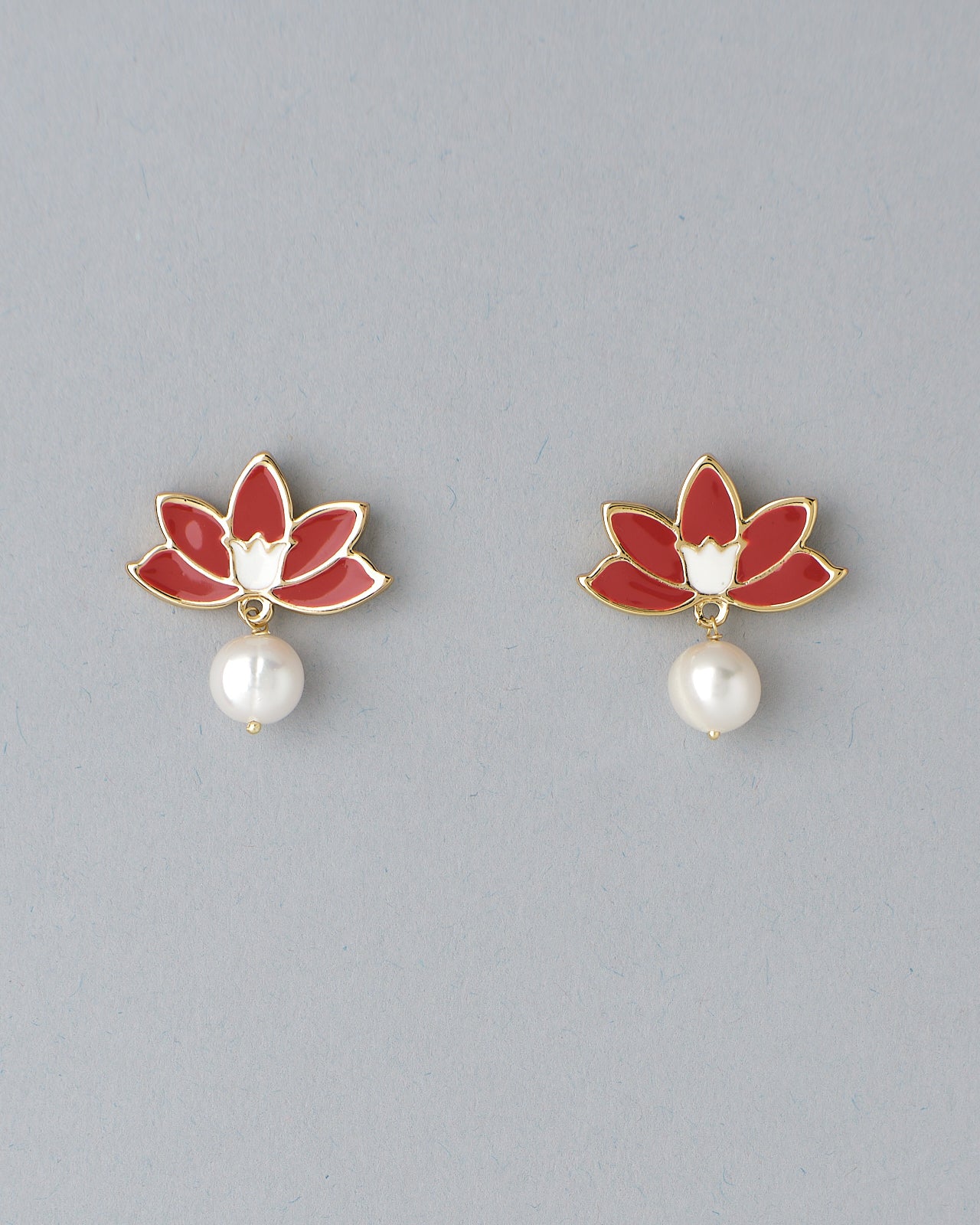 Symbolizing growth and purity, the Eternal Lotus earrings with their graceful pearls are a timeless accent for your festive wardrobe.