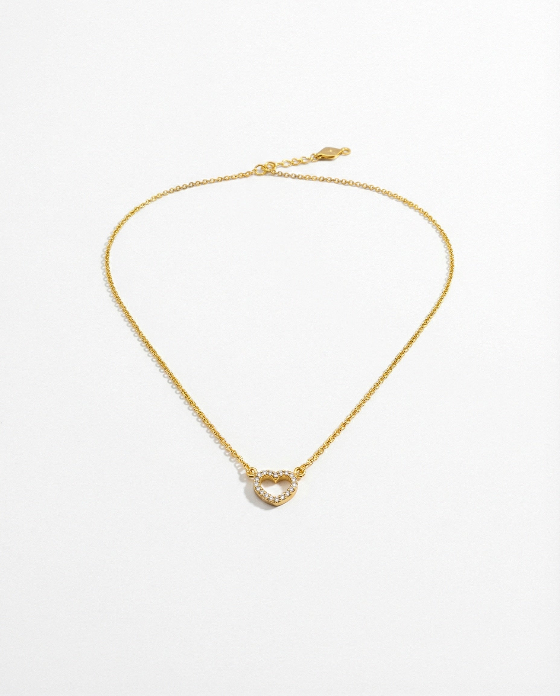 Bring a touch of sparkling romance to your everyday look with our Heart Pendant Necklace. This stunning piece features a delicately contoured open-heart pendant, meticulously embellished with brilliant-cut crystals that catch the light from every angle.