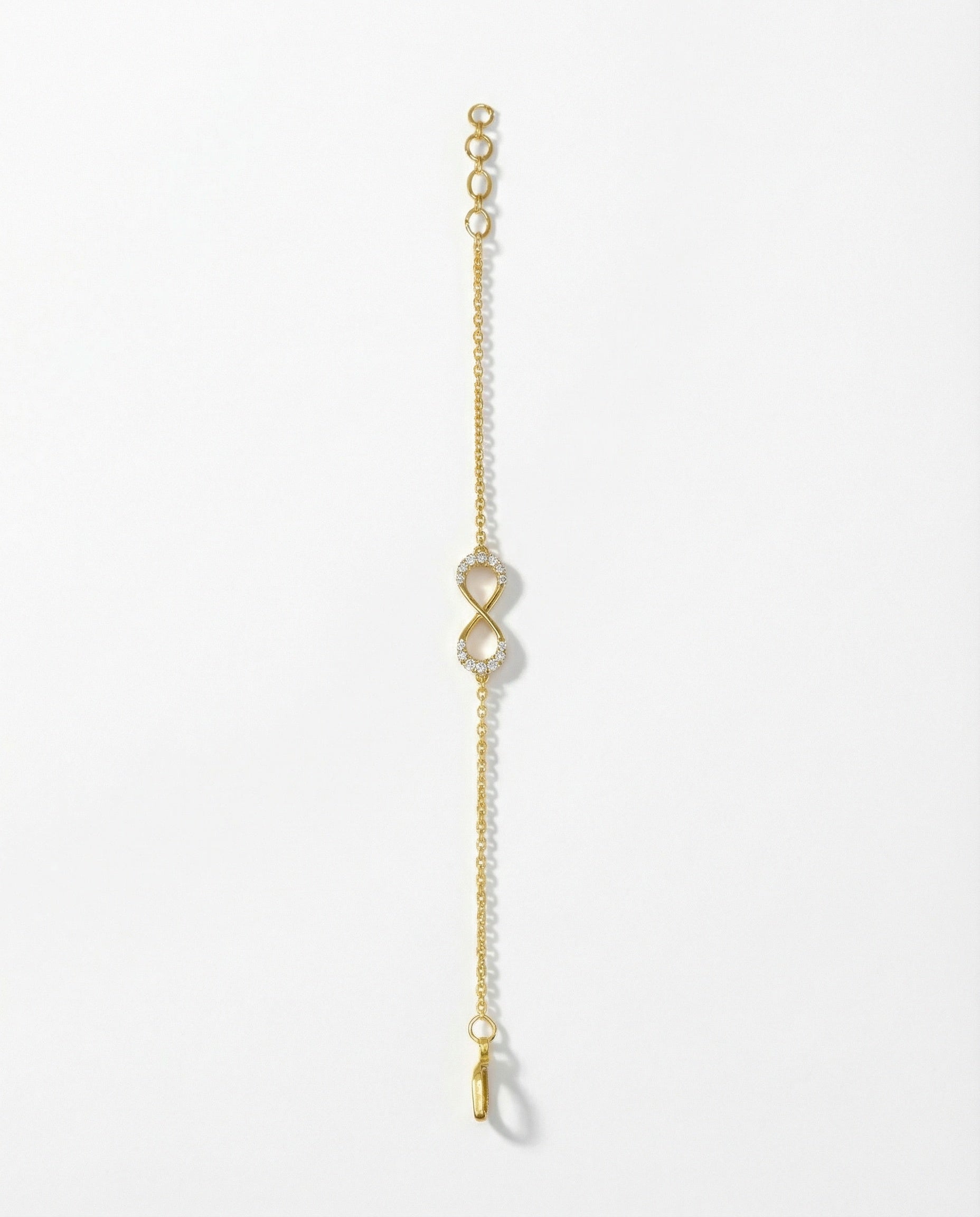 Add a touch of meaningful elegance to your jewellery collection with our Infinity Bracelet. This piece features a central infinity symbol meticulously set with shimmering pavé CZ.
