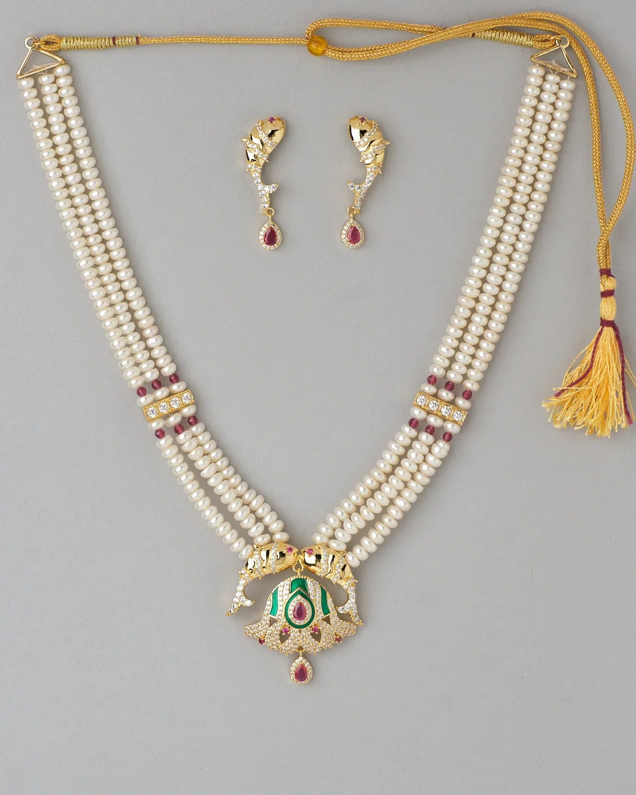 Festive Pearl & Ruby Necklace Set