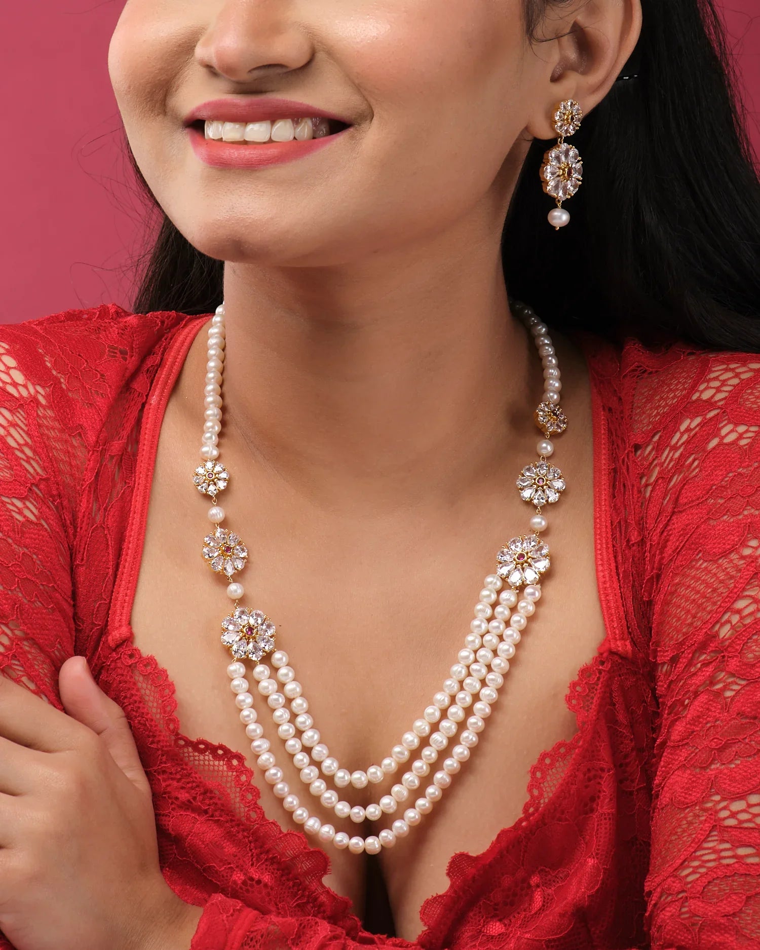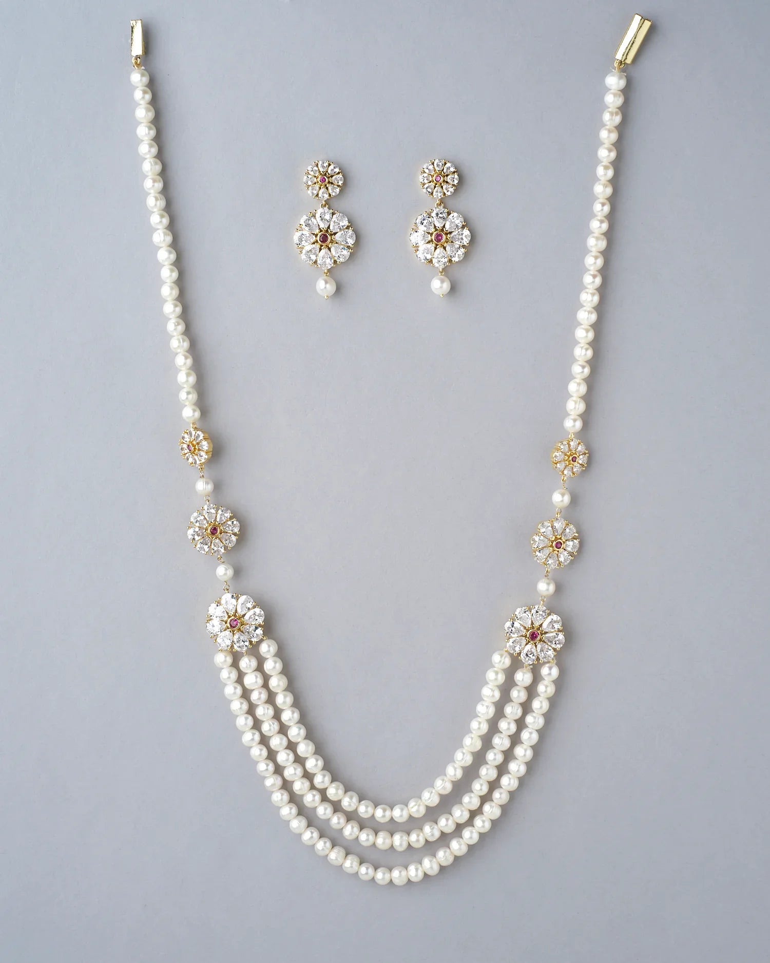 A sophisticated pearl necklace set to complement any outfit.