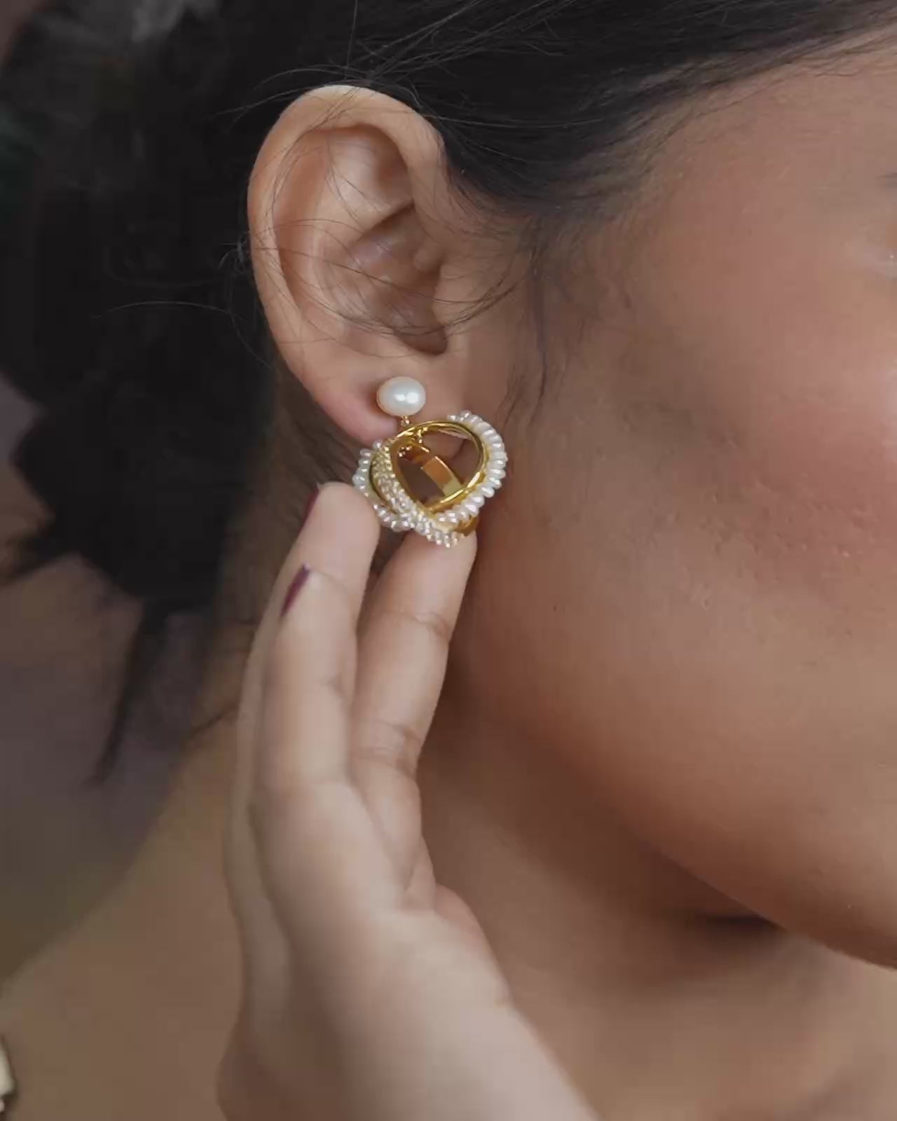 Stylish hoop earrings crafted in a gold finish, embellished with sparkling CZ stones and delicate pearl detailing. Perfect for festive occasions and elegant ethnic or fusion wear.