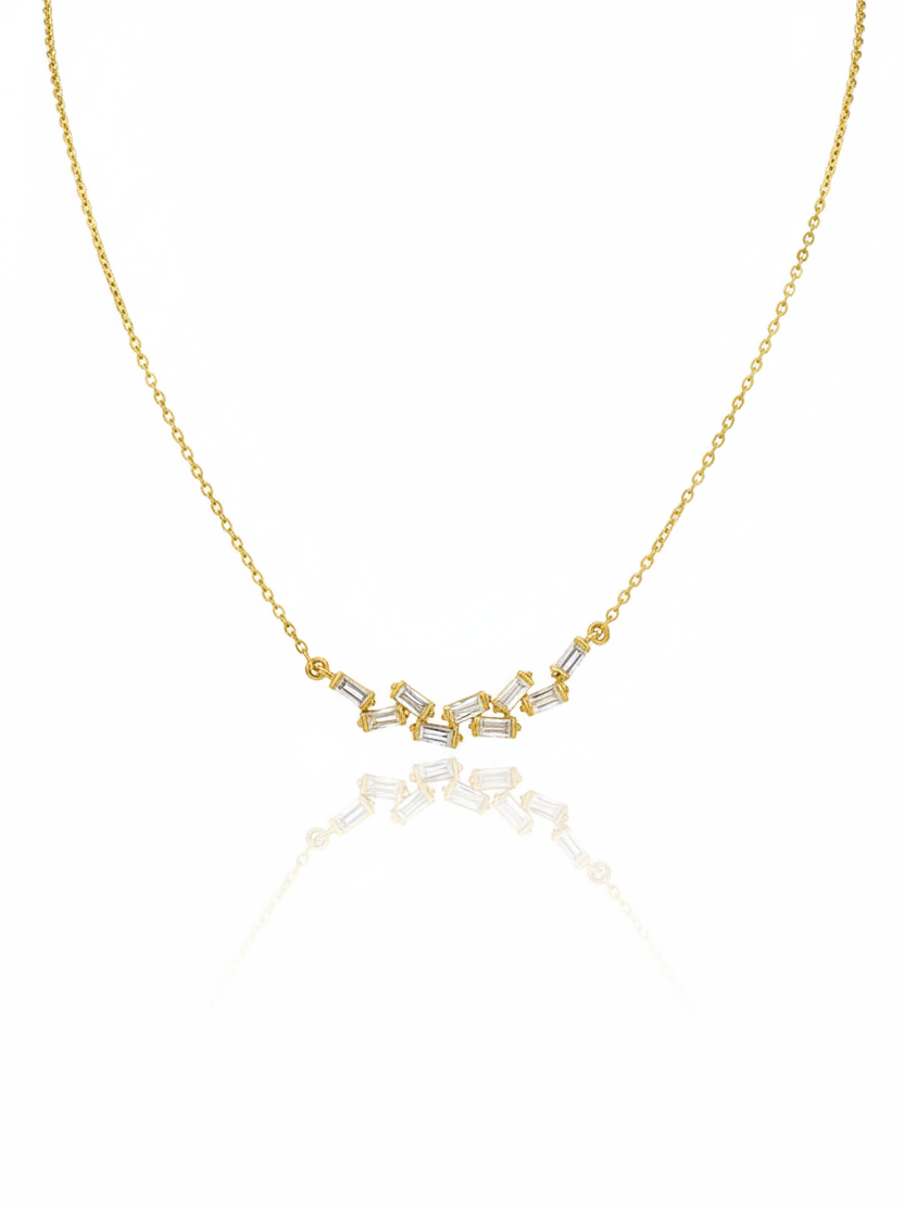 Gold-Plated Mosaic Baguette Cut CZ Cluster Necklace