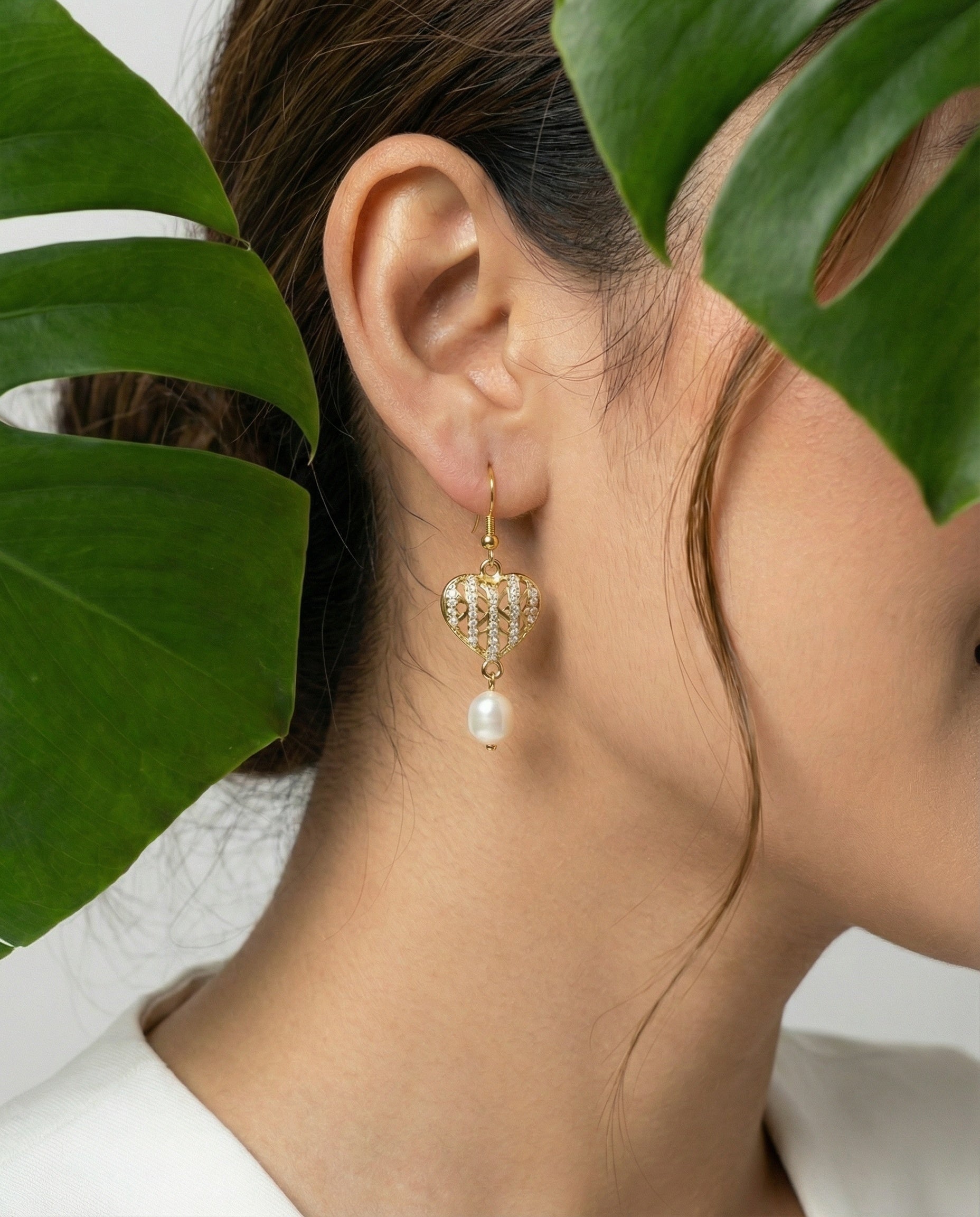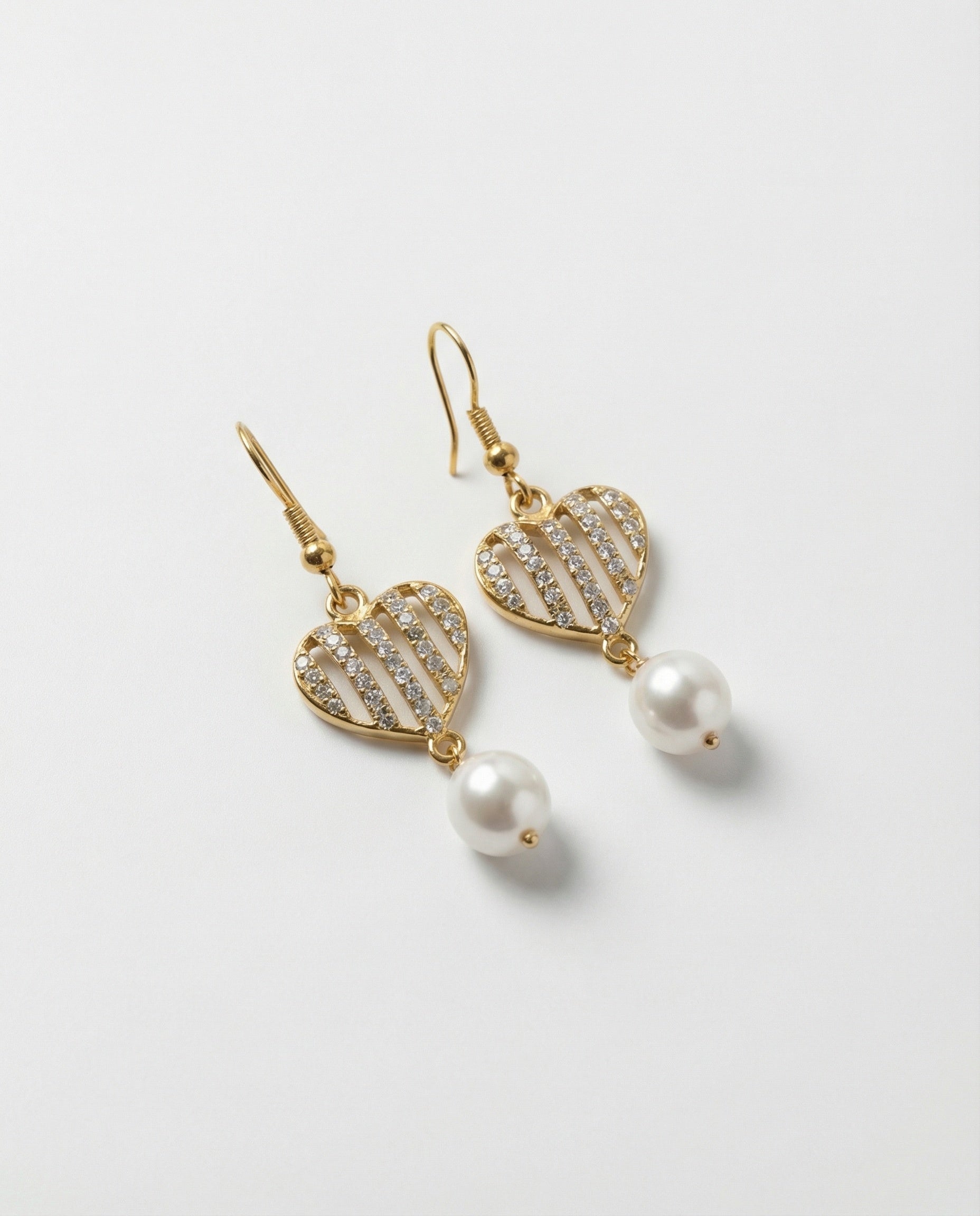 Gold-Plated Openwork Heart Drop Pearl Earrings