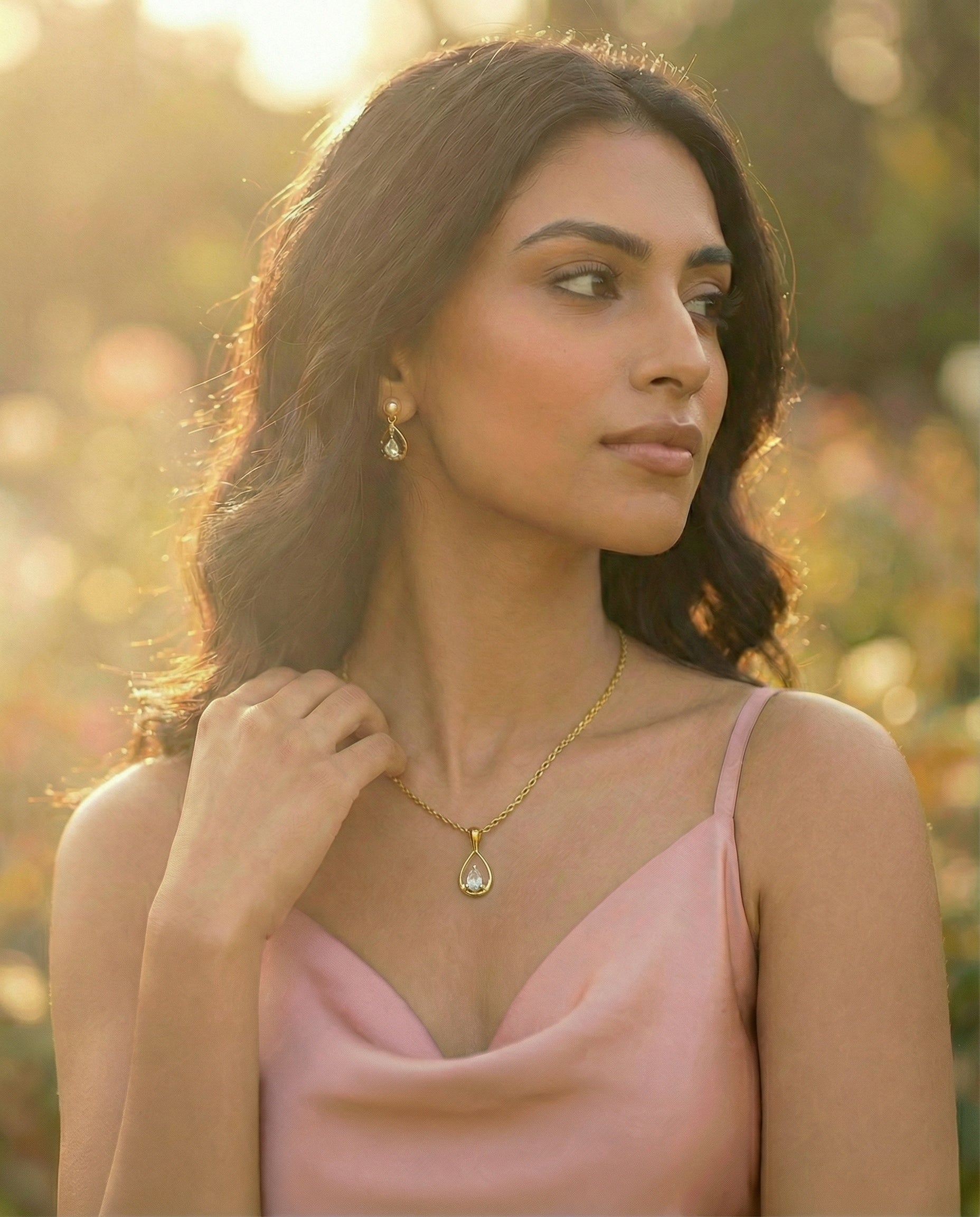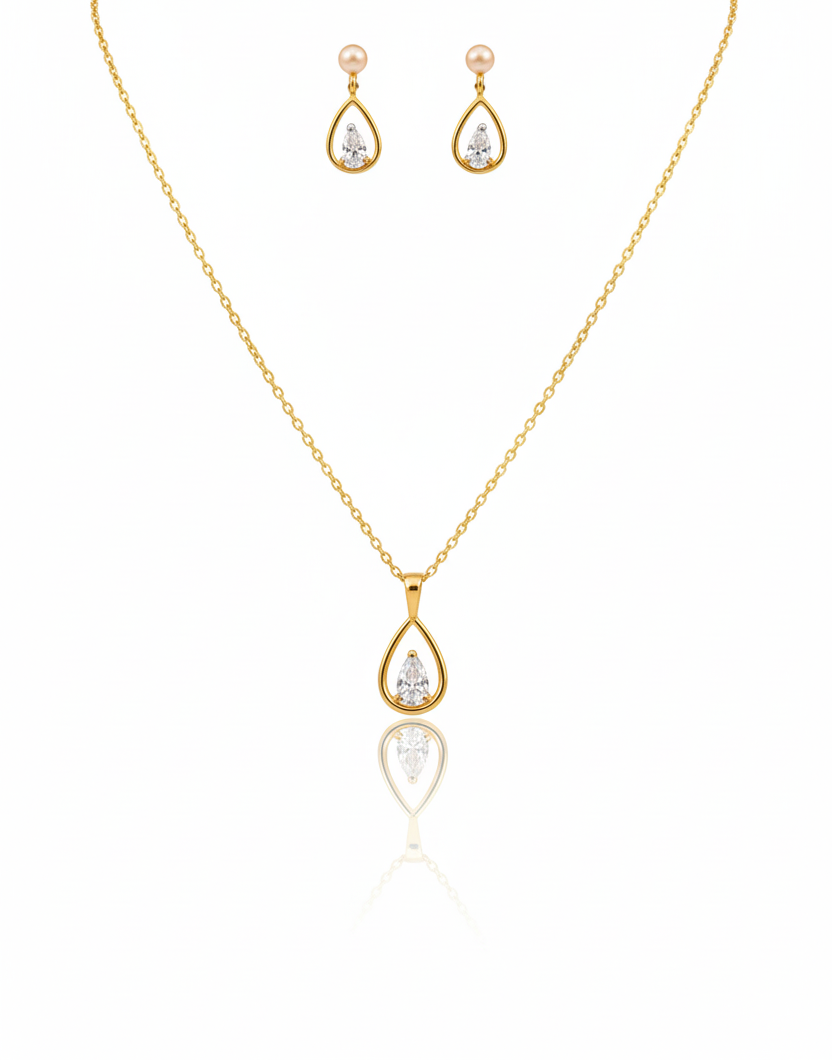 Elevate your jewellery collection with this sophisticated matching set. Crafted with a high-polish gold finish, this set features a delicate pendant necklace and coordinating drop earrings designed to capture the light from every angle.