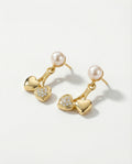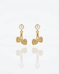 Gold-Plated Twin Heart Cherry Drop Pearl Earrings