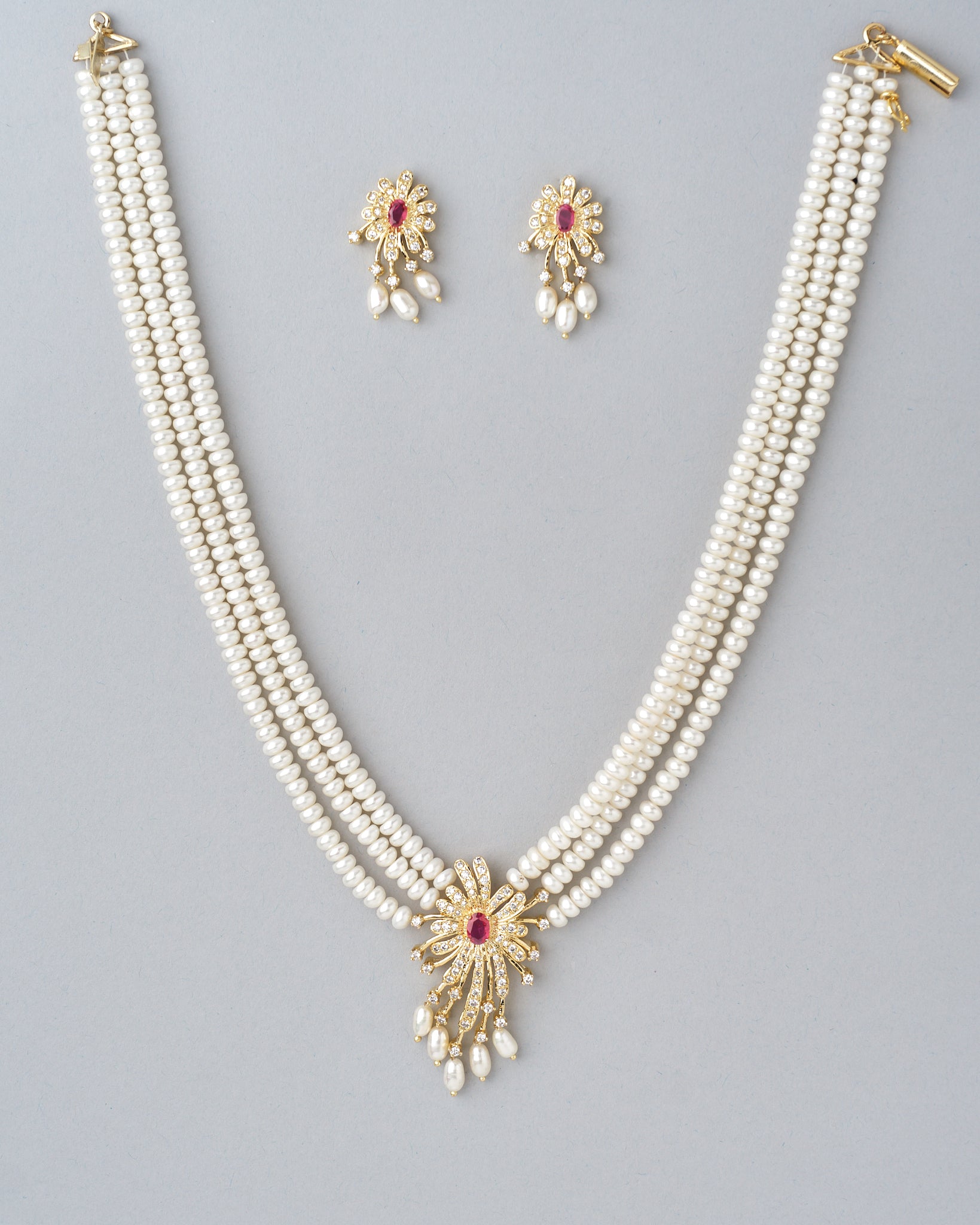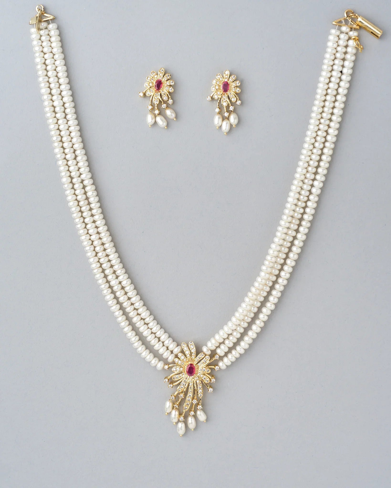 A masterpiece of craftsmanship, this floral gold necklace set bursts with intricate beauty. Perfect for celebrations, parties, and bridal wear.