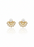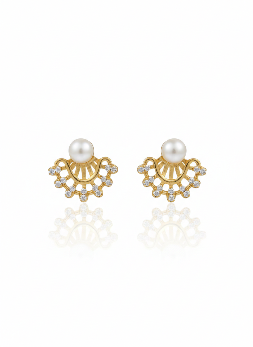Golden Sunburst Pearl Stud Earrings