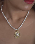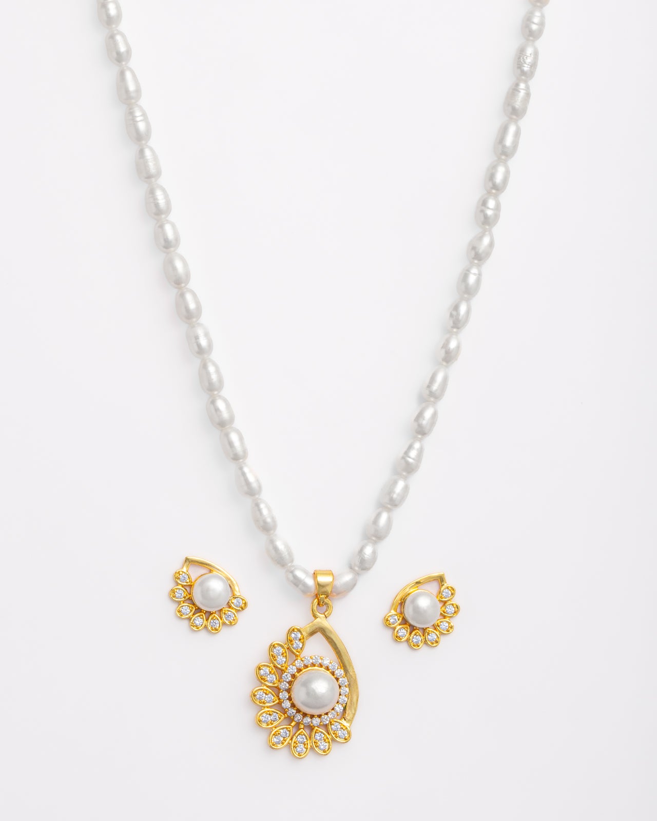Elegant Pearl Necklace Set with CZ Peacock-Inspired Pendant