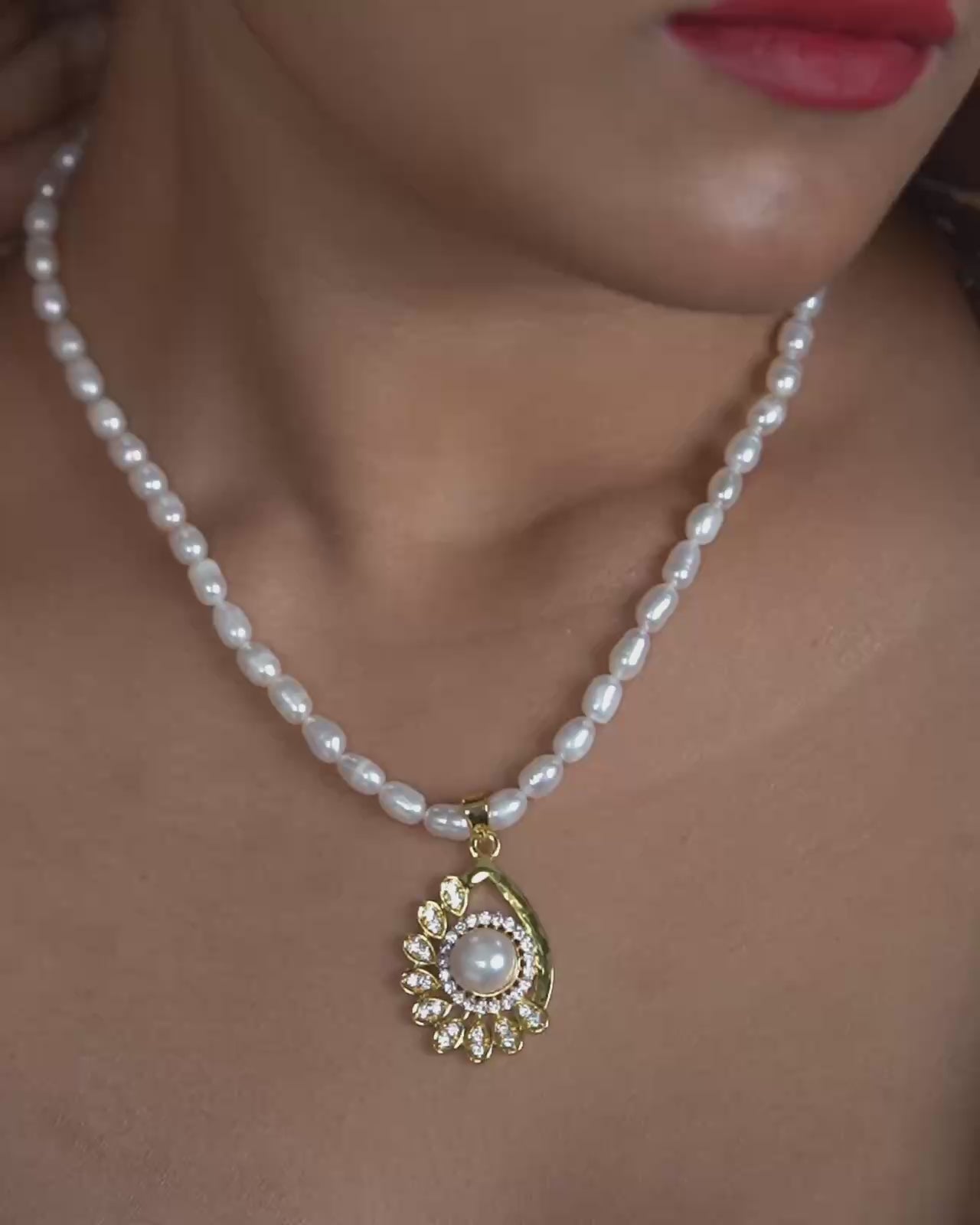 Enhance your timeless elegance with this Elegant Pearl Necklace Set, beautifully designed with a peacock-inspired motif. The necklace features smooth, luminous oval pearls that create a classic and graceful look.