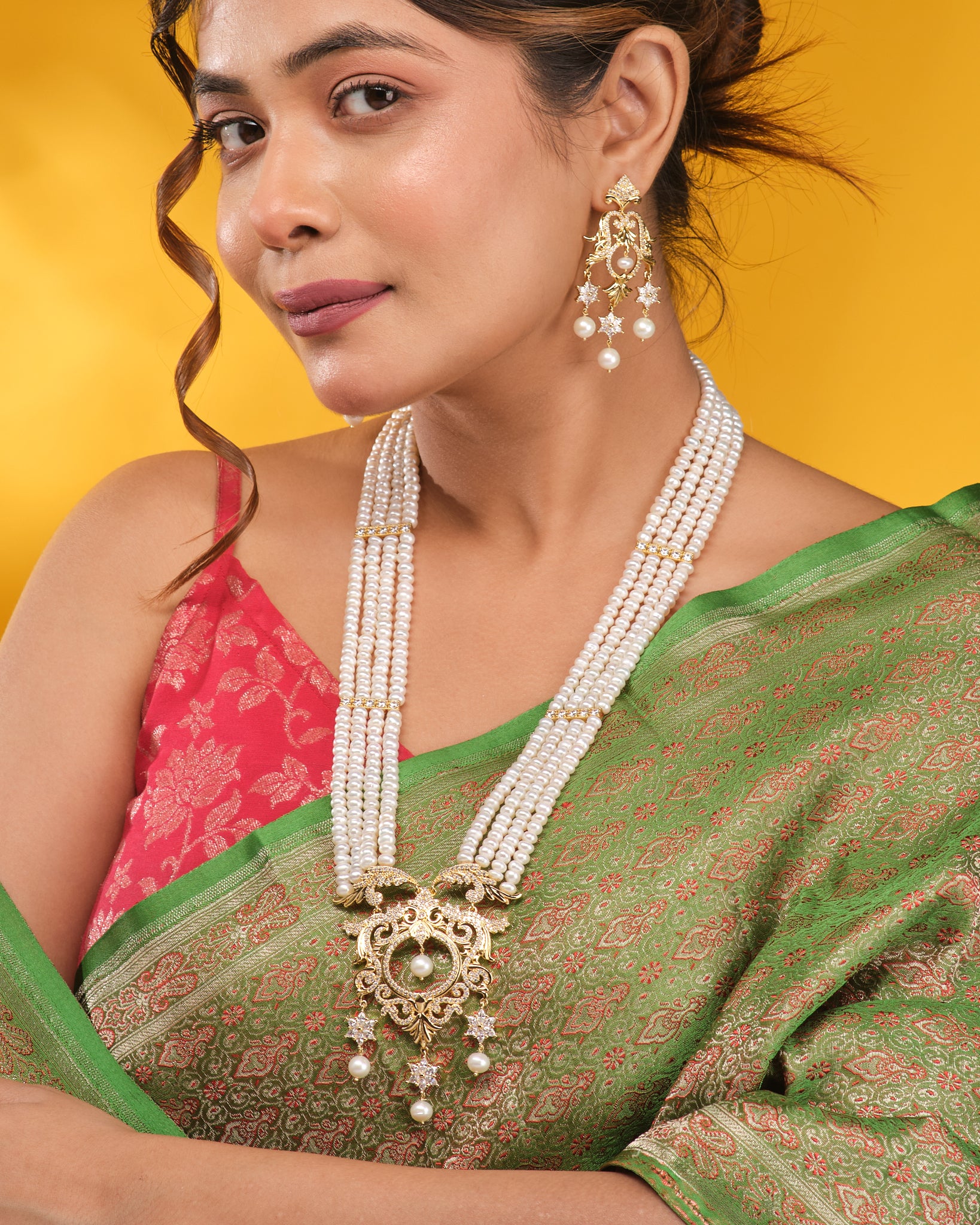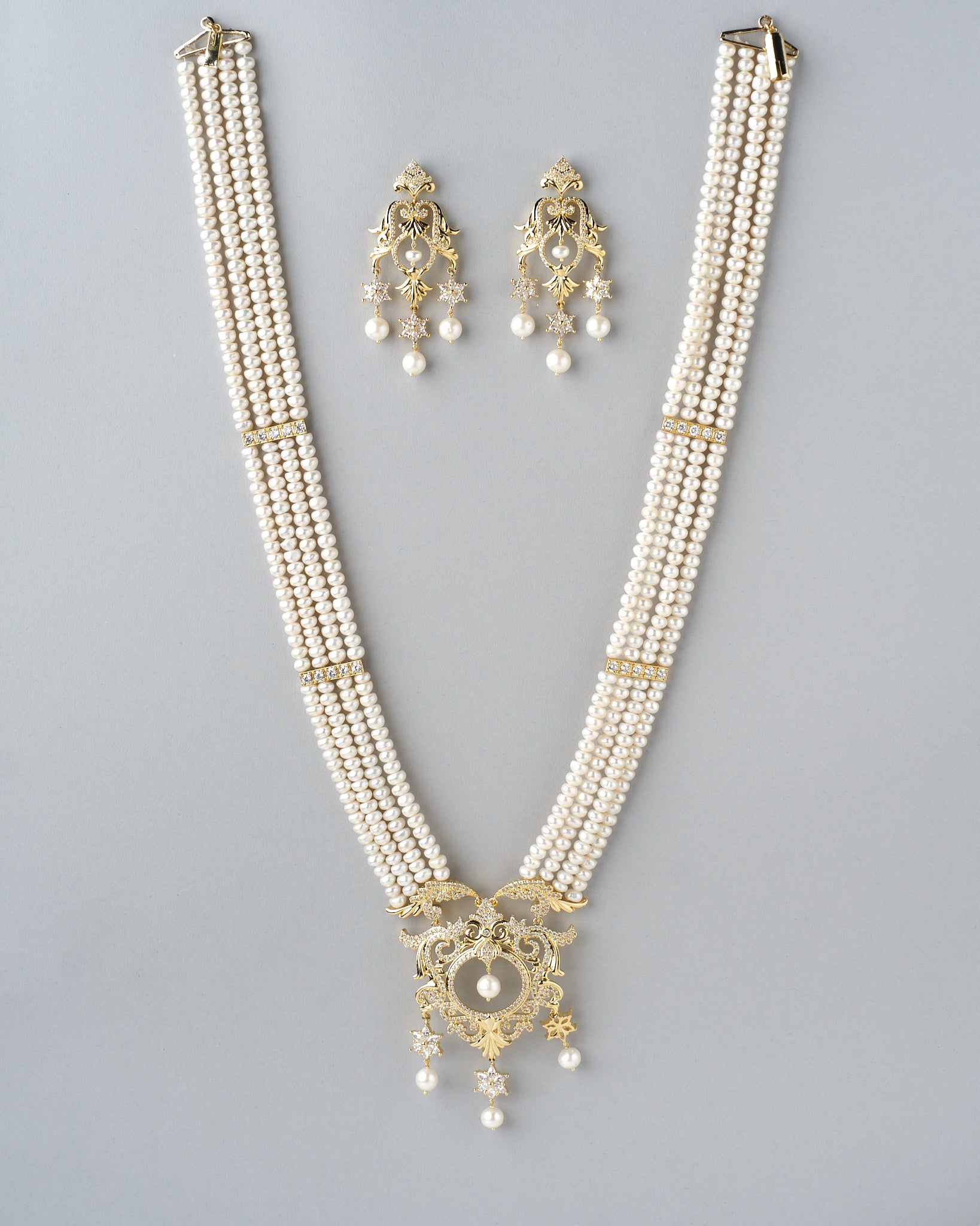 Softly shimmering pearls paired with refined CZ work for regal grace