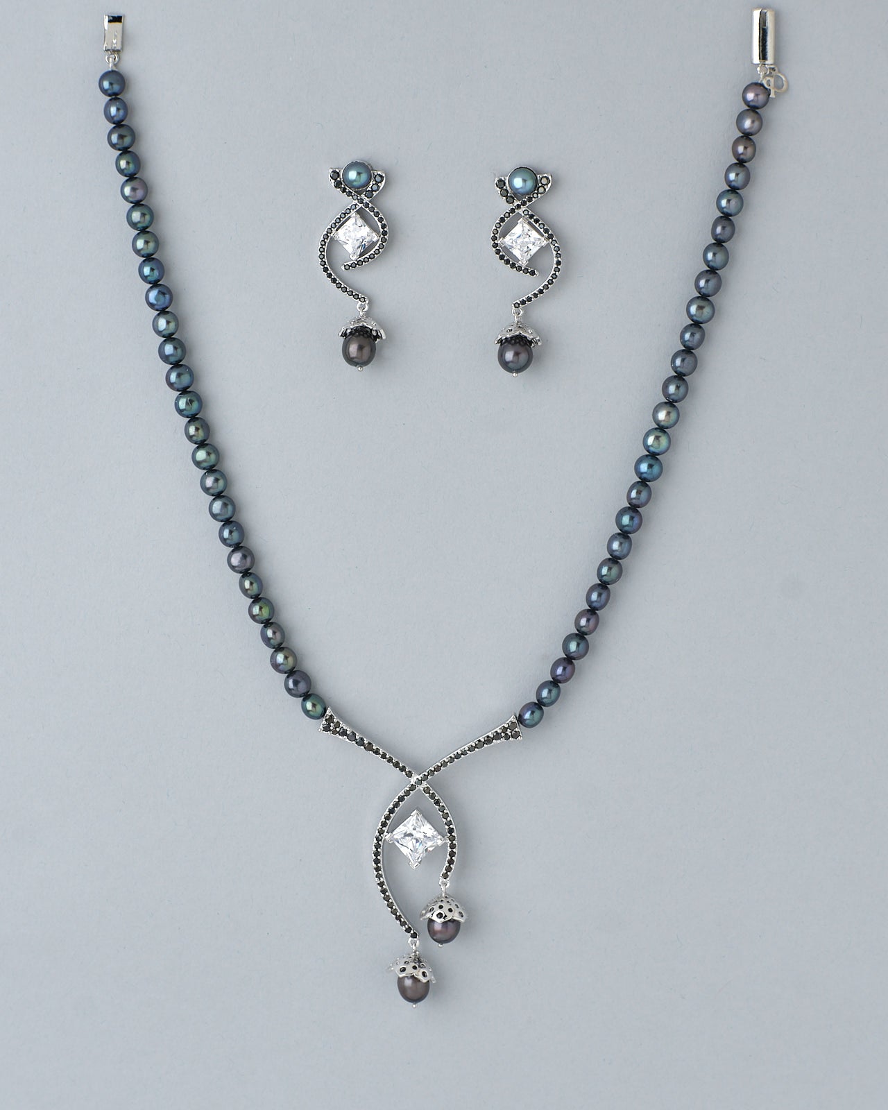 A unique blend of elegance and modern style, featuring black pearls with crystal detailing and CZ embellishments. Perfect for brides who want to make a bold, graceful statement.
