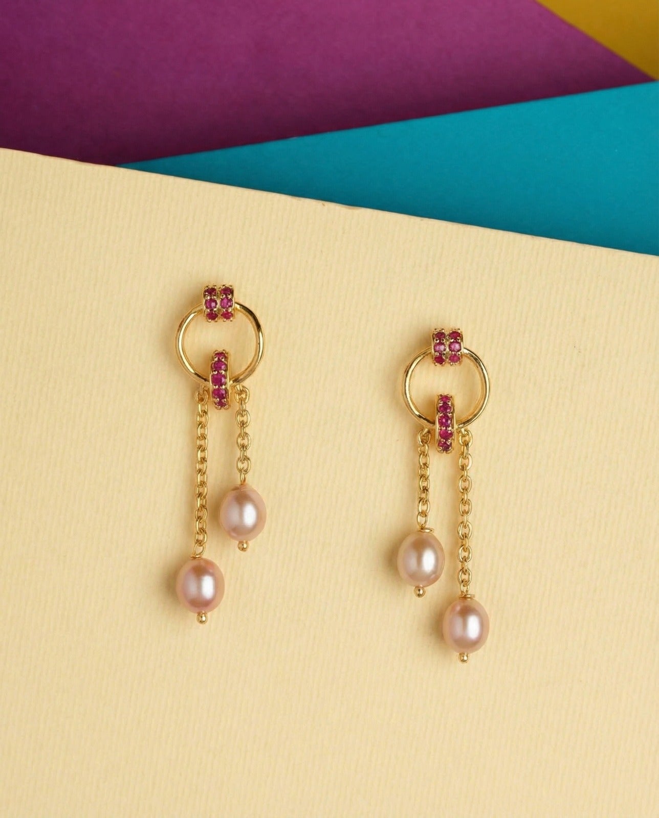 The Modish Frond Dangler Pearl Earrings are elegant dangling earrings that combine contemporary fashion with classic pearl charm. They typically feature a frond-inspired design think delicate, leaf-like or flowing organic shapes — that gracefully suspends lustrous pearl drops, giving both movement and sophistication to the wearer’s look.