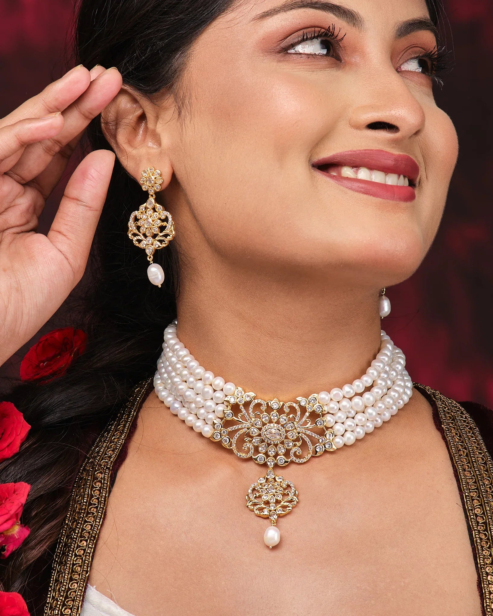 Timelessly elegant, this handcrafted pearl necklace combines the luster of natural freshwater pearls with the sophistication of a minimalist gold clasp, perfect for both everyday refinement and special evening wear.