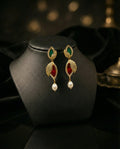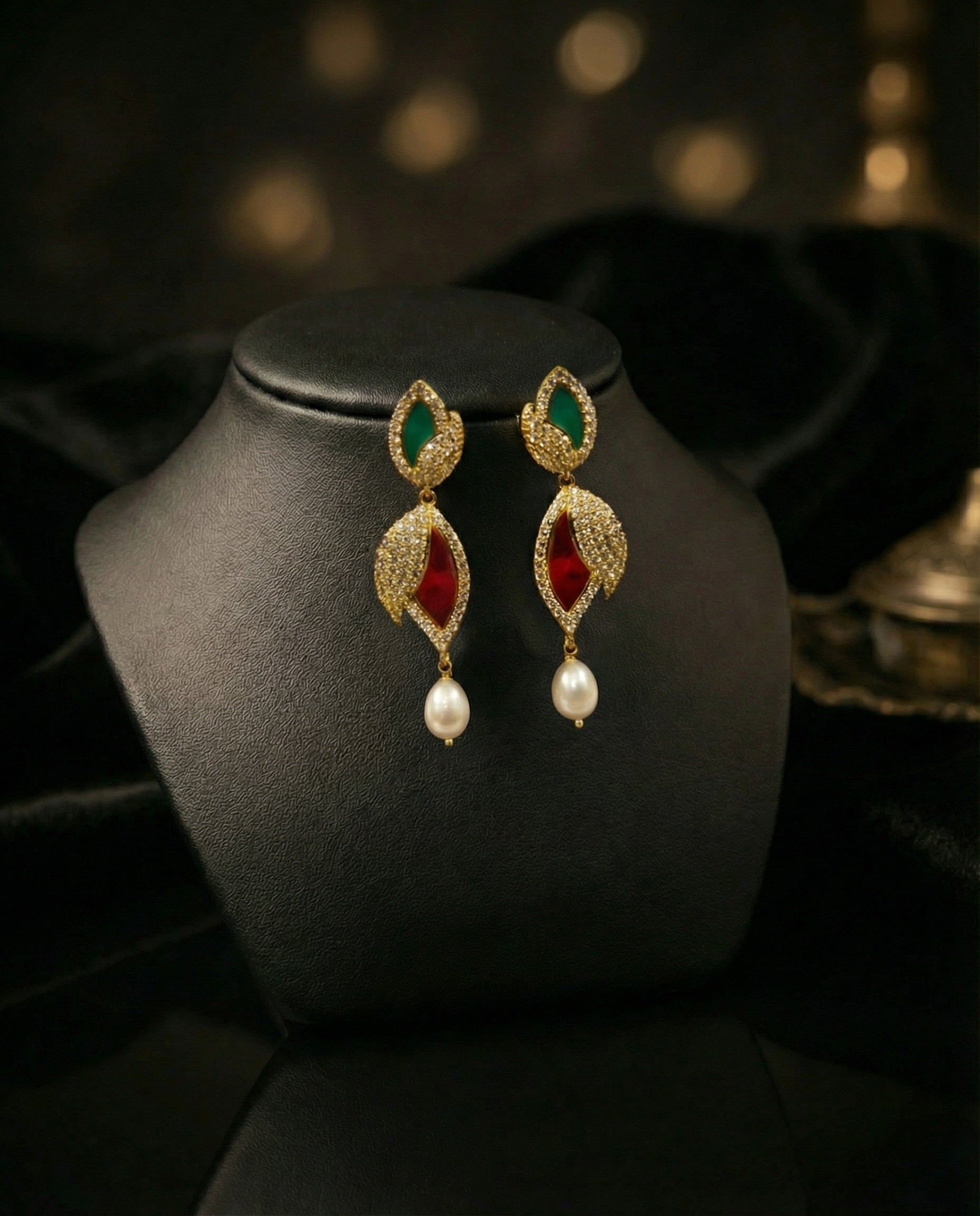 Exquisite Craftsmanship Meets Timeless Luxury. Elevate your jewellery collection with these breathtaking drop earrings, designed for the woman who appreciates the finer details of traditional artistry. Featuring a sophisticated tri-tier design, these earrings blend vibrant colour with brilliant sparkle.
