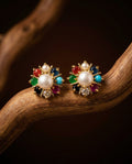 Navratna-Style Multi-Gemstone Starburst Pearl Studs