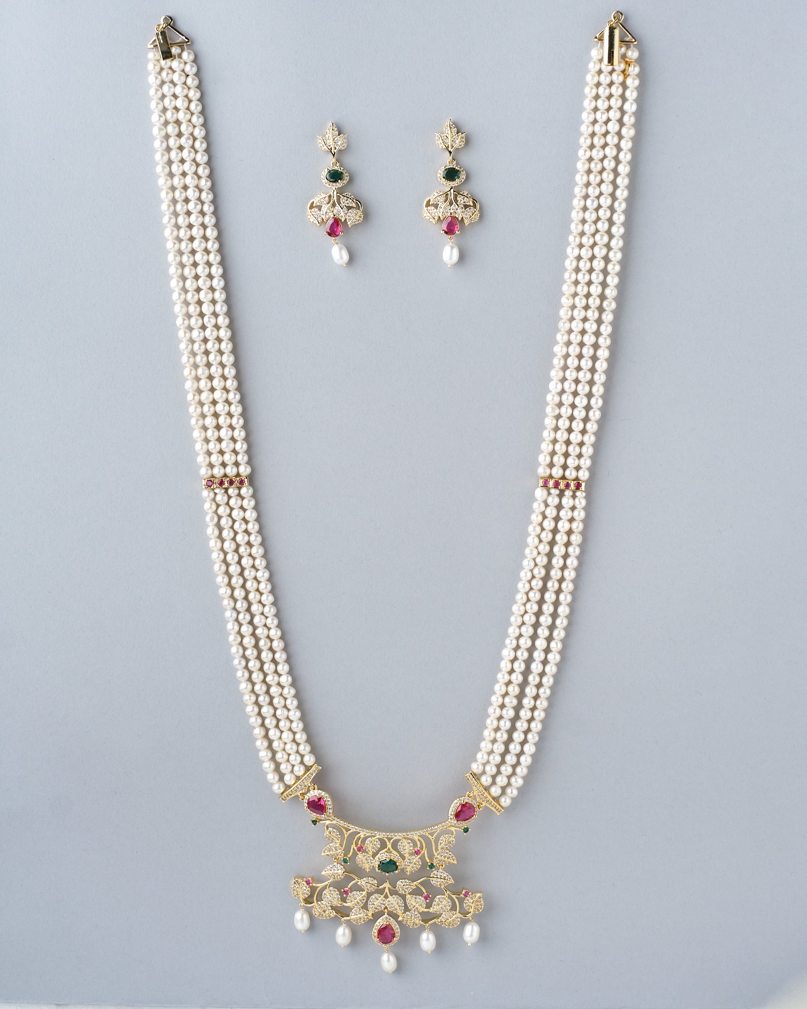 Supreme craftsmanship with premium pearls and high‑grade CZ stones for a royal finish