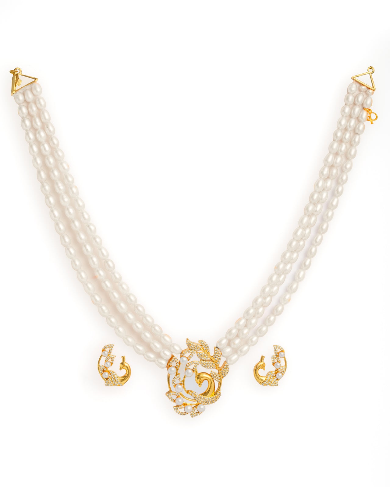 Peacock Royal Pearl Necklace Set with CZ Swirl Pendant