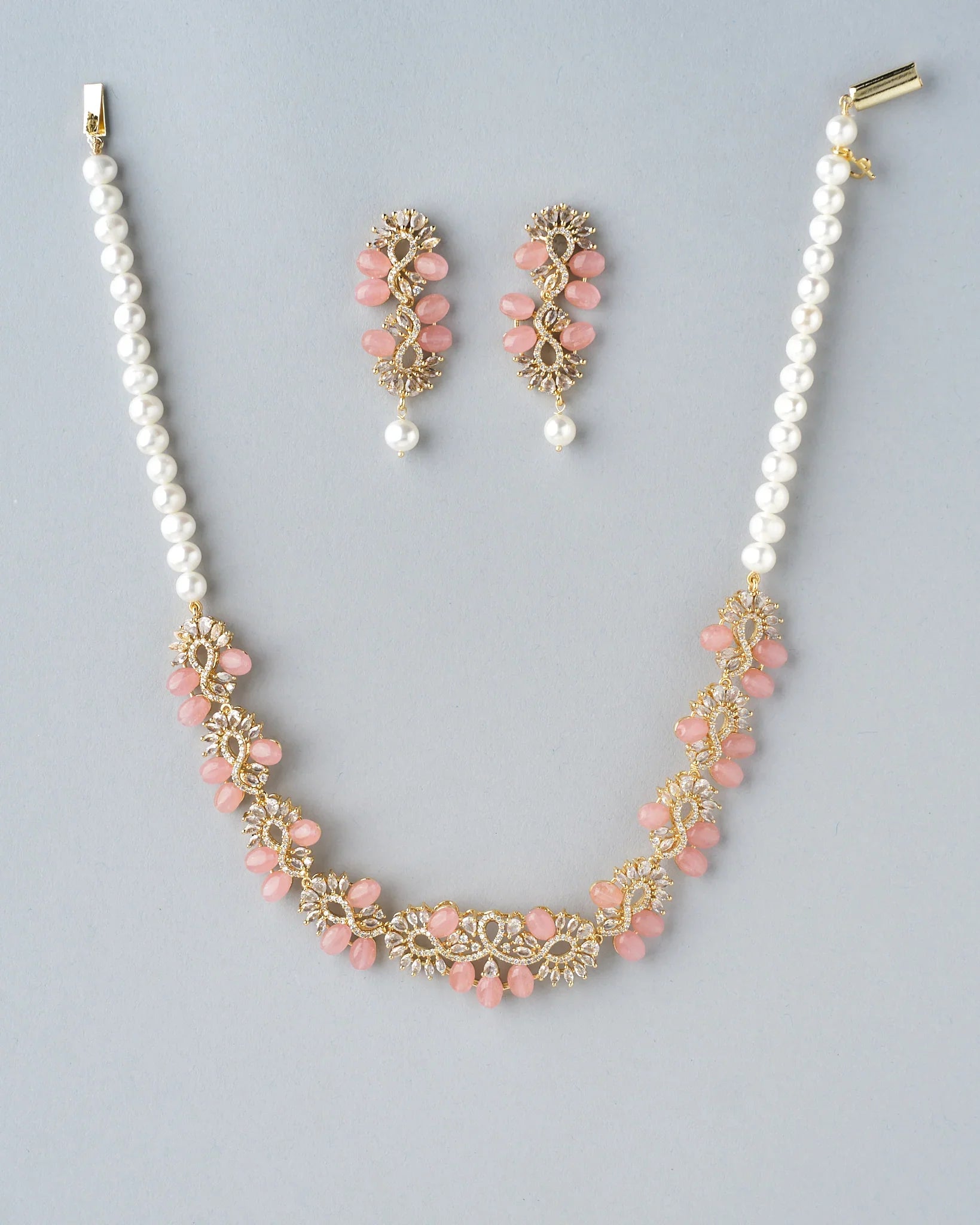 Petite Pink CZ Pearl Necklace Set Delicate Beauty