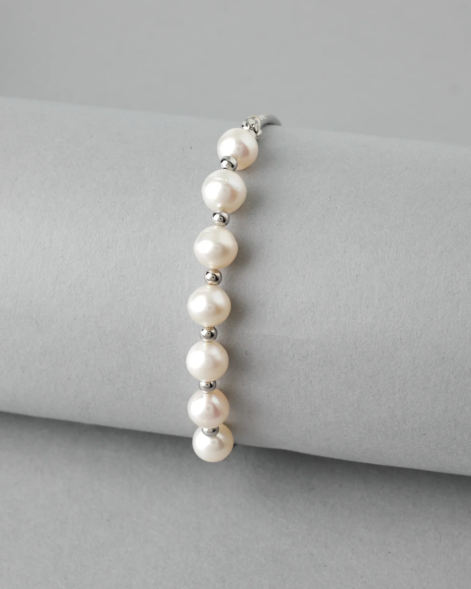 Elevate your elegance with the Petite Spheres Dramatic Pearl Bracelet a refined blend of modern minimalism and timeless sophistication. Featuring a strand of luminous petite pearls each perfectly matched for size and sheen, this bracelet captures subtle drama in its delicate scale. Finished with a secure, polished clasp, it’s the perfect piece to transition effortlessly from day to evening.