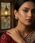 Add a touch of celestial charm to your jewellery ensemble with these masterfully designed circular stud earrings. Centred around a brilliant starburst motif, each earring features a large, precision-cut central solitaire surrounded by a shimmering array of smaller crystals that catch the light from every angle.