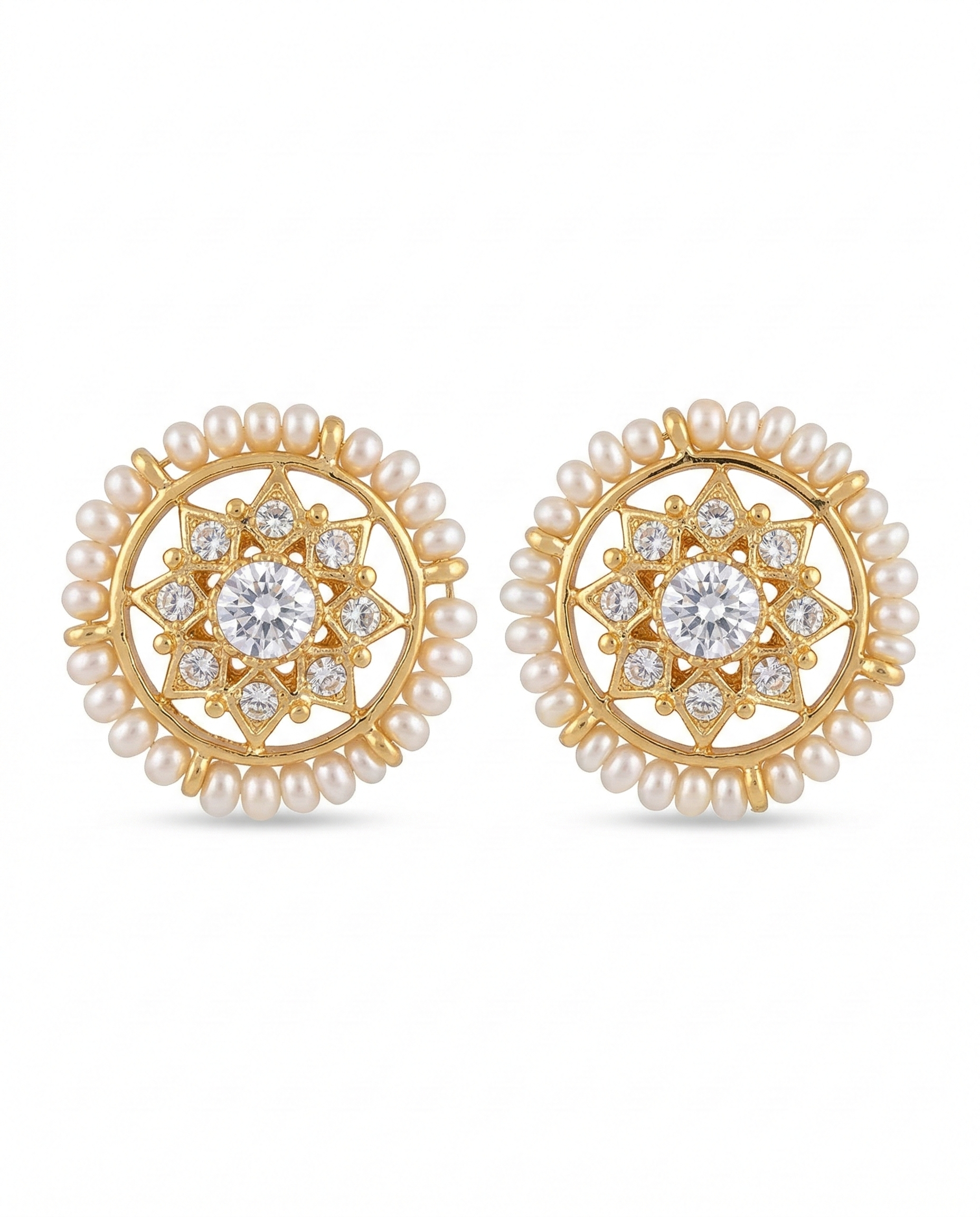 Radiant Pearl Gold-Plated Starburst Stud Earrings