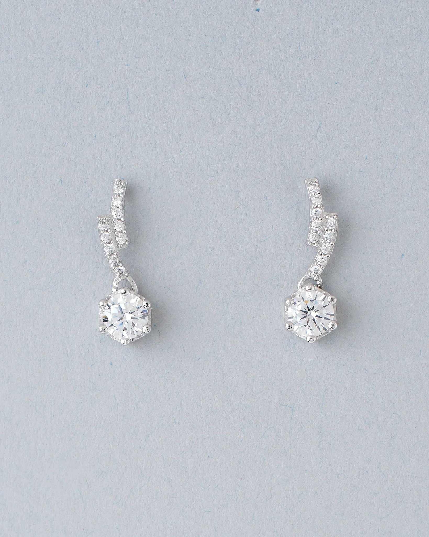 Let elegance dangle with these romantic drop earrings featuring sparkling CZ stones set in a sleek demifine silver frame Perfect for evening events or elevating your everyday style